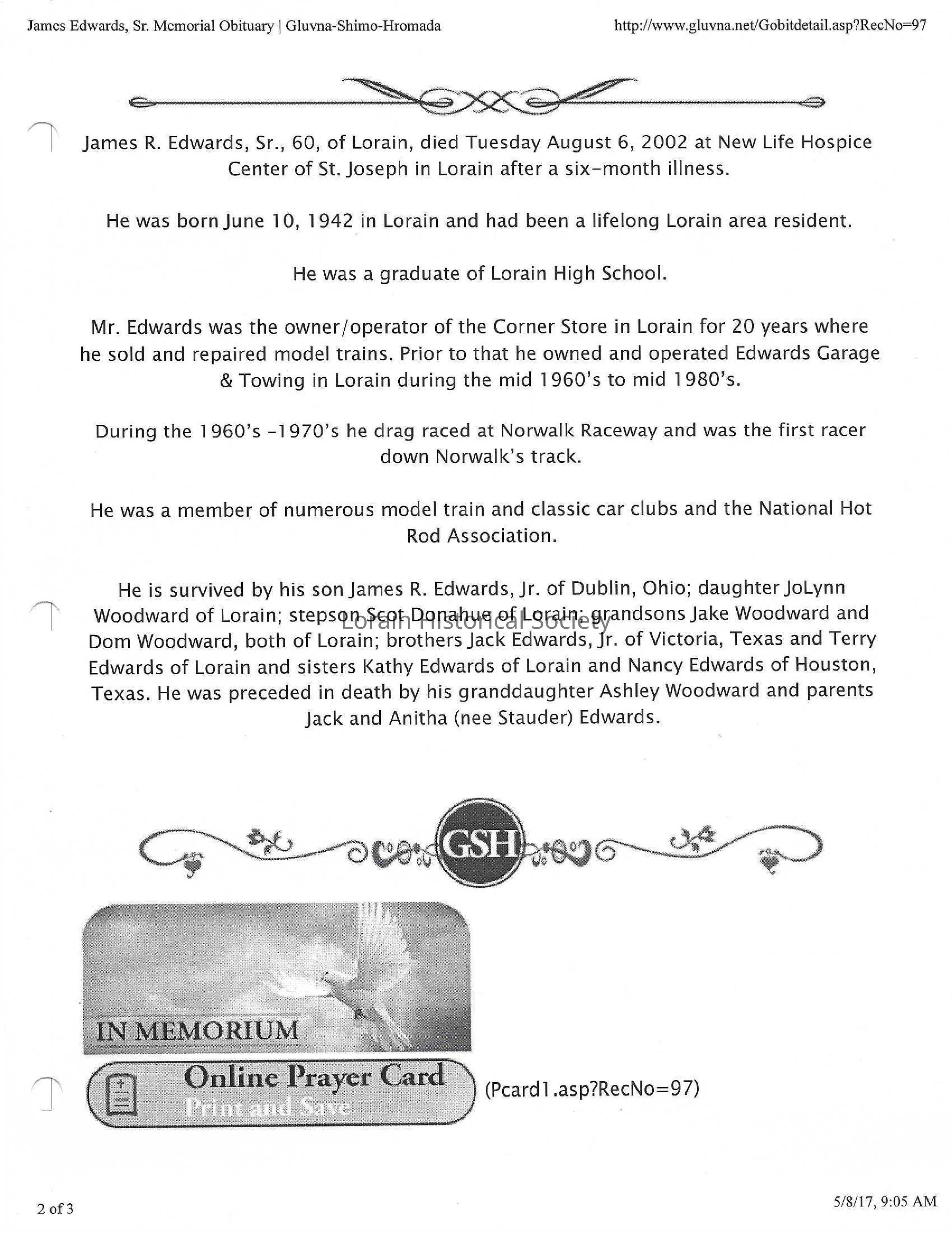 Edwards, James R Sr obit