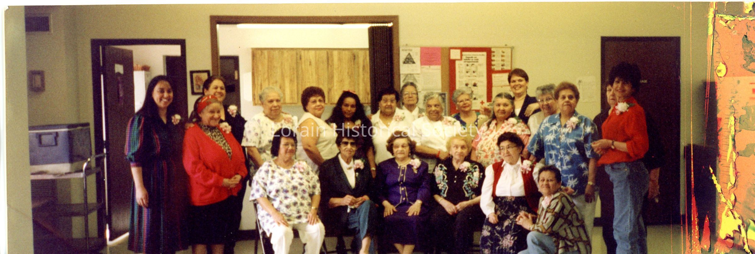 Color panoramic photo of El Dorado group. Left standing in red Carmen Cintron. Sitting left white patterned top Maria Reyes. Photo developed May 18, 1998.Collection