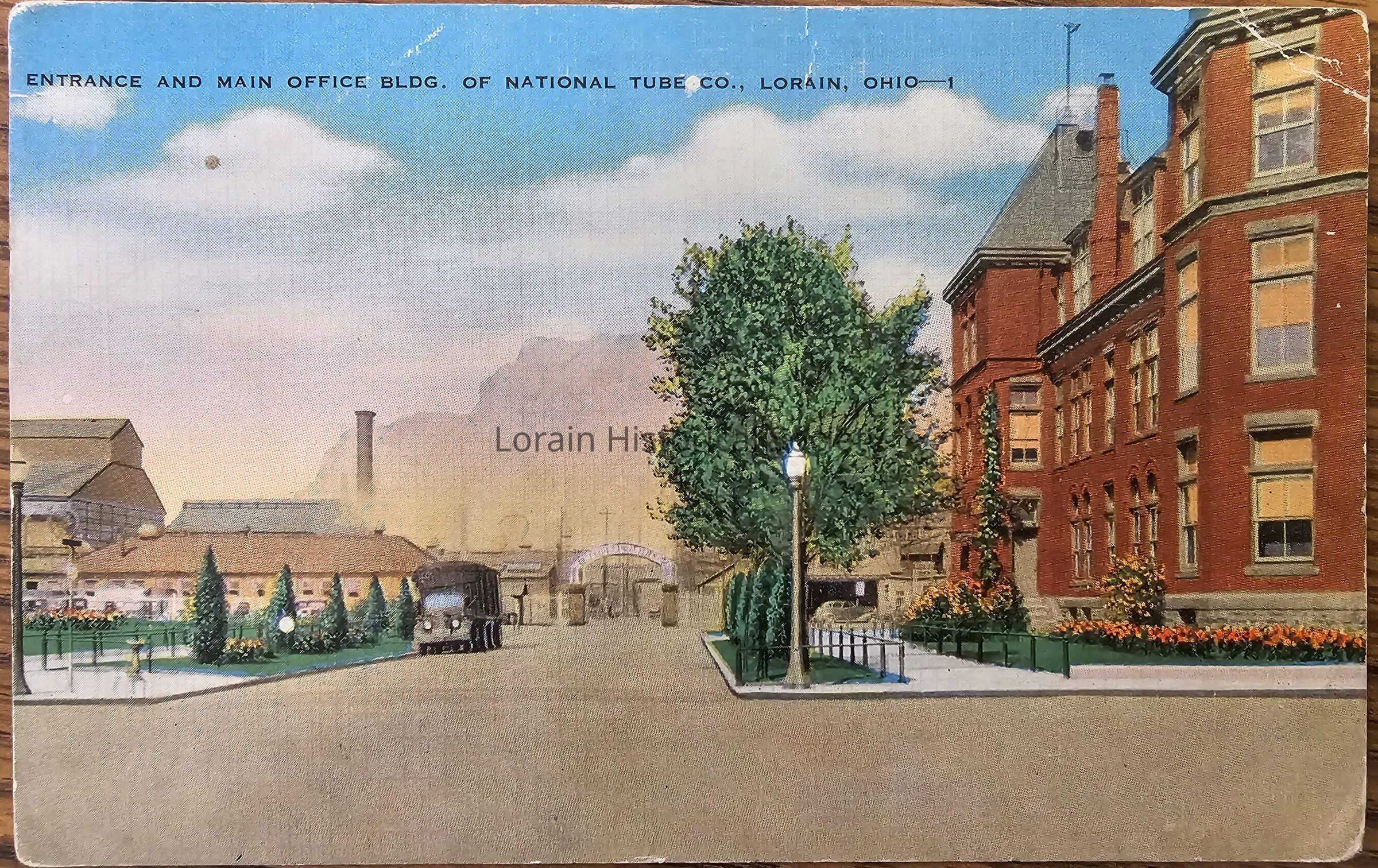 Entrance and Main Office Building of National Tube, Lorain, Ohio at Pearl and 28th Streets.Context