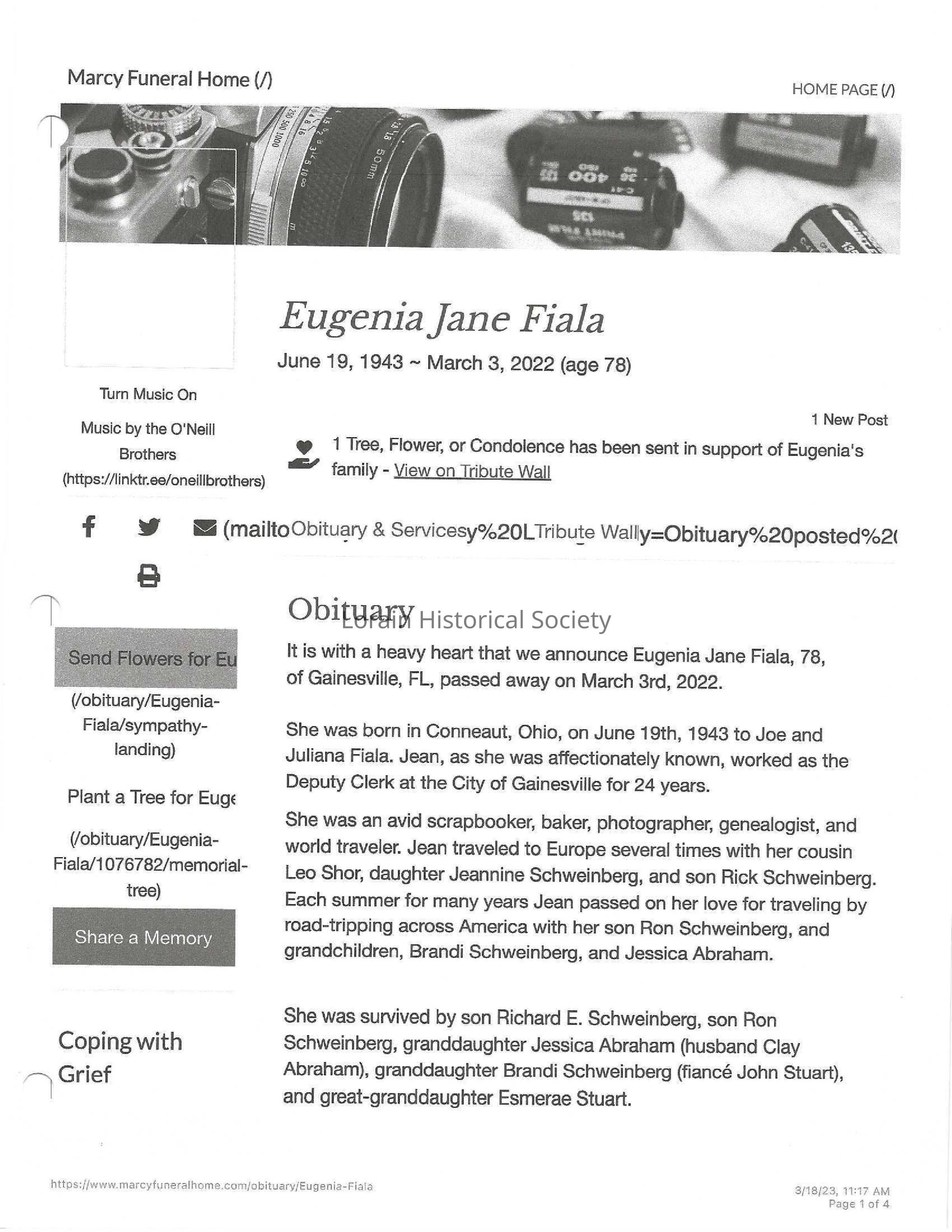 Fiala, Eugenia Jane obit