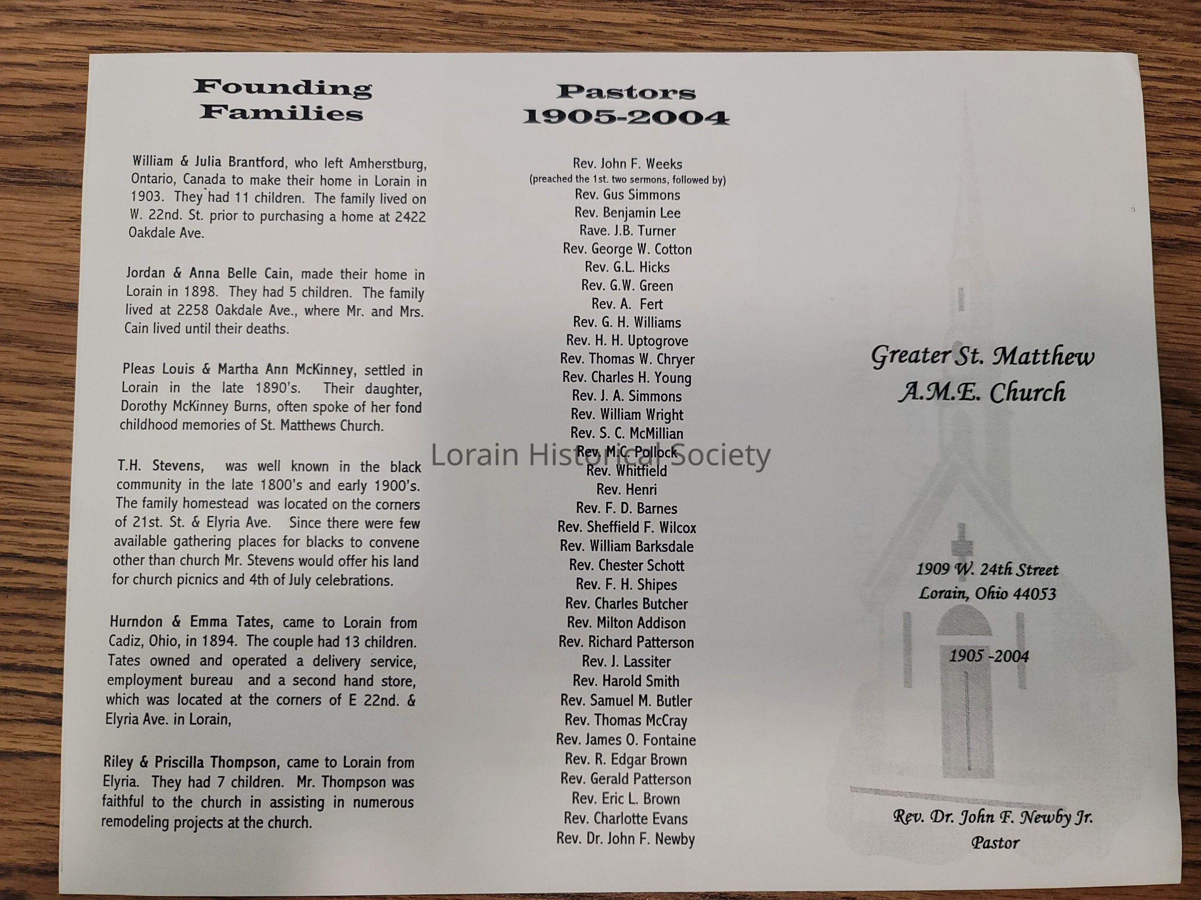 Greater St. Matthew A.M.E. Church program, dated 2004. Rev. Dr. John F. Newby Jr is Pastor.