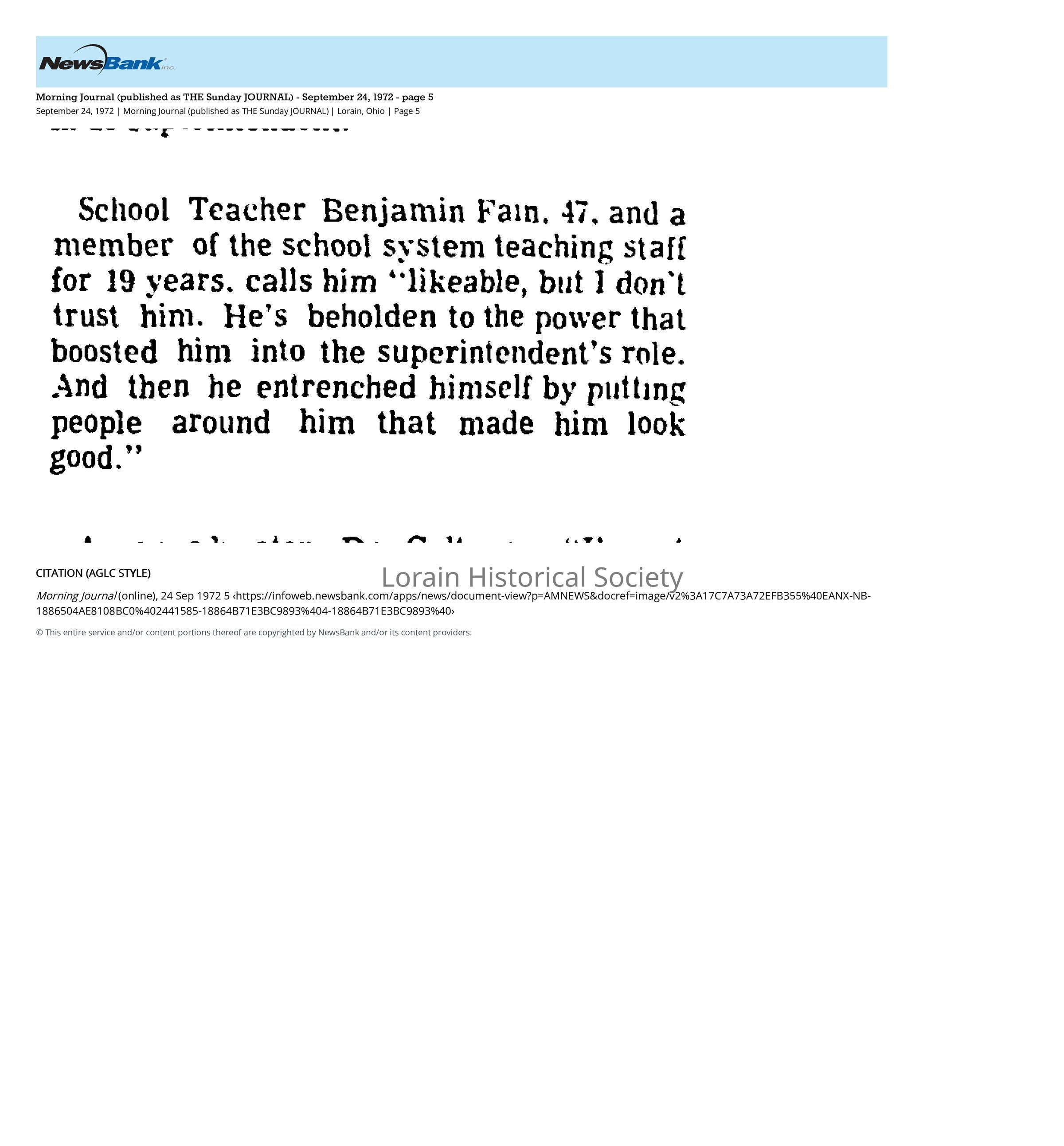 In this quote published in the Sep 24, 1972 edition of the Lorain Journal, Mr. Hamzah shares his impressions of the new superintendent.