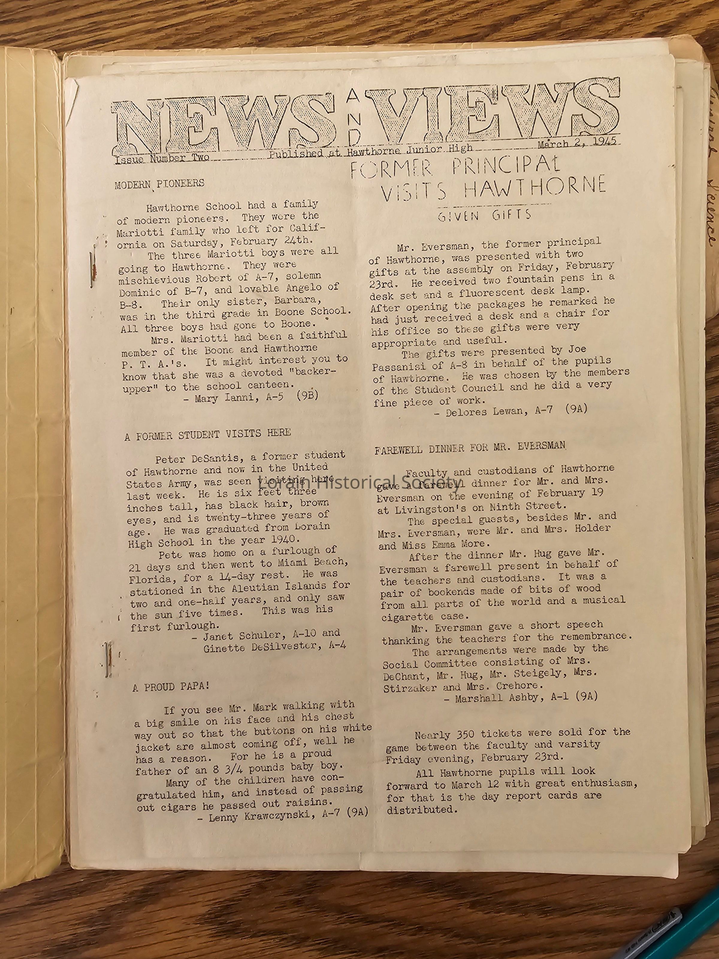 School newsletter, "News and Views" c. 1940's (8count)