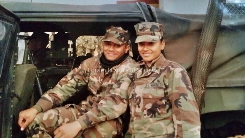Photo of Hector and Kattie Garcia during field training in Okinawa, Japan in 2002. Hector is sitting in a HMMWV (high mobility multipurpose wheeled vehicle) or humvee. Kattie is standing next to him. Kattie and Hector both served in the U.S. Marine Corps and held the rank of Lance Corporal (E-3) at the time of this photo. Kattie and Hector were also dating. They would later get married.Collection