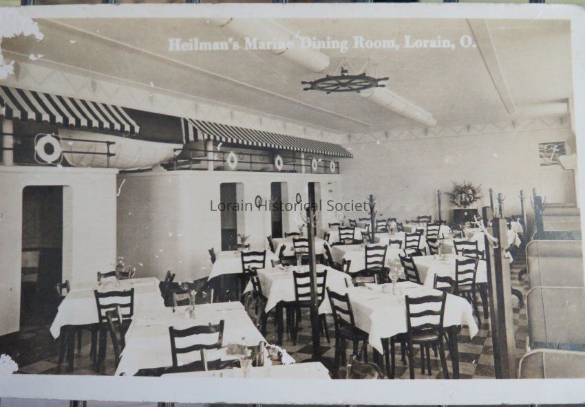 A black and white picture postcard of the inside of Heilman's Marine Dining Room, and was located in downtown Lorain, Ohio at 302 Broadway.Acquisition