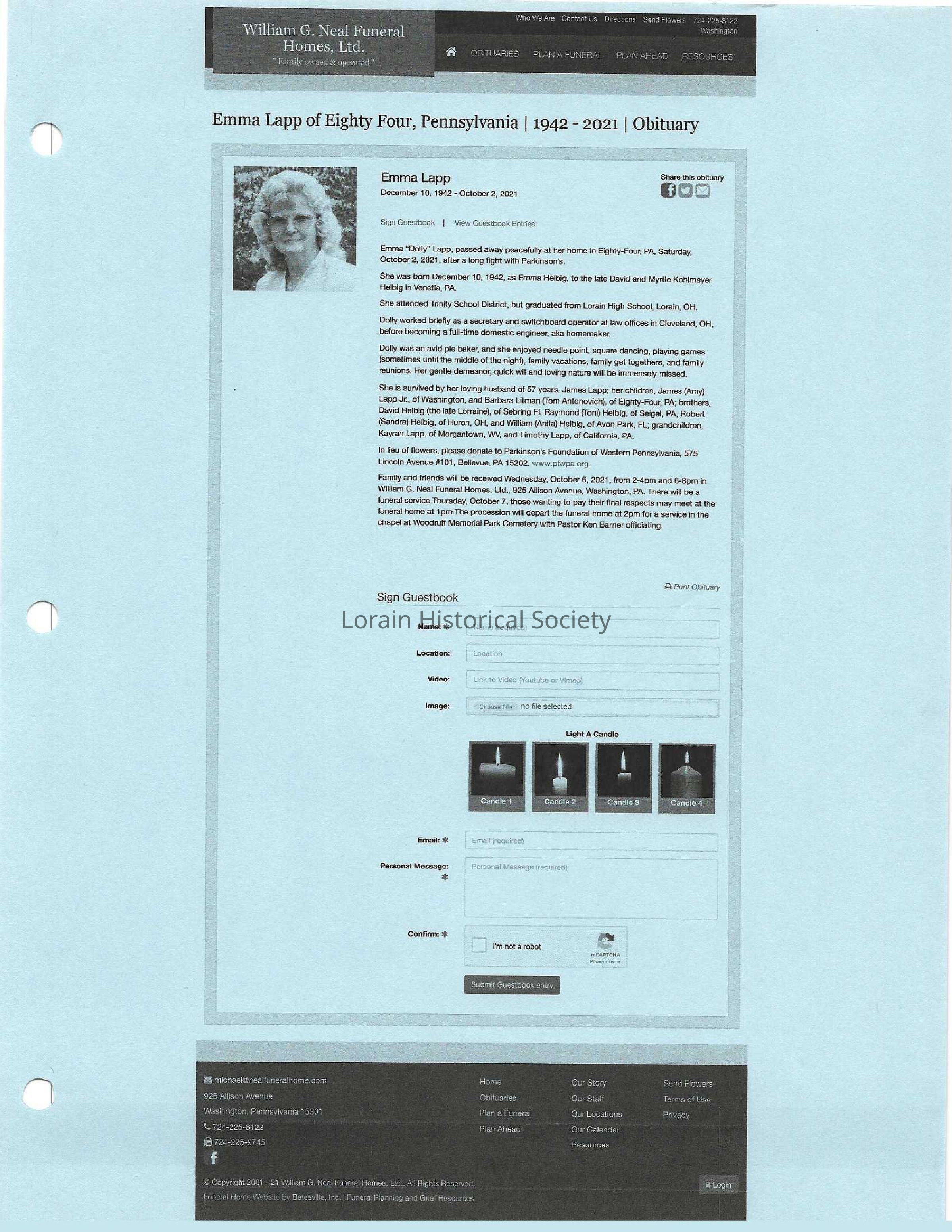 Helbig, Emma Dolly Lapp obit