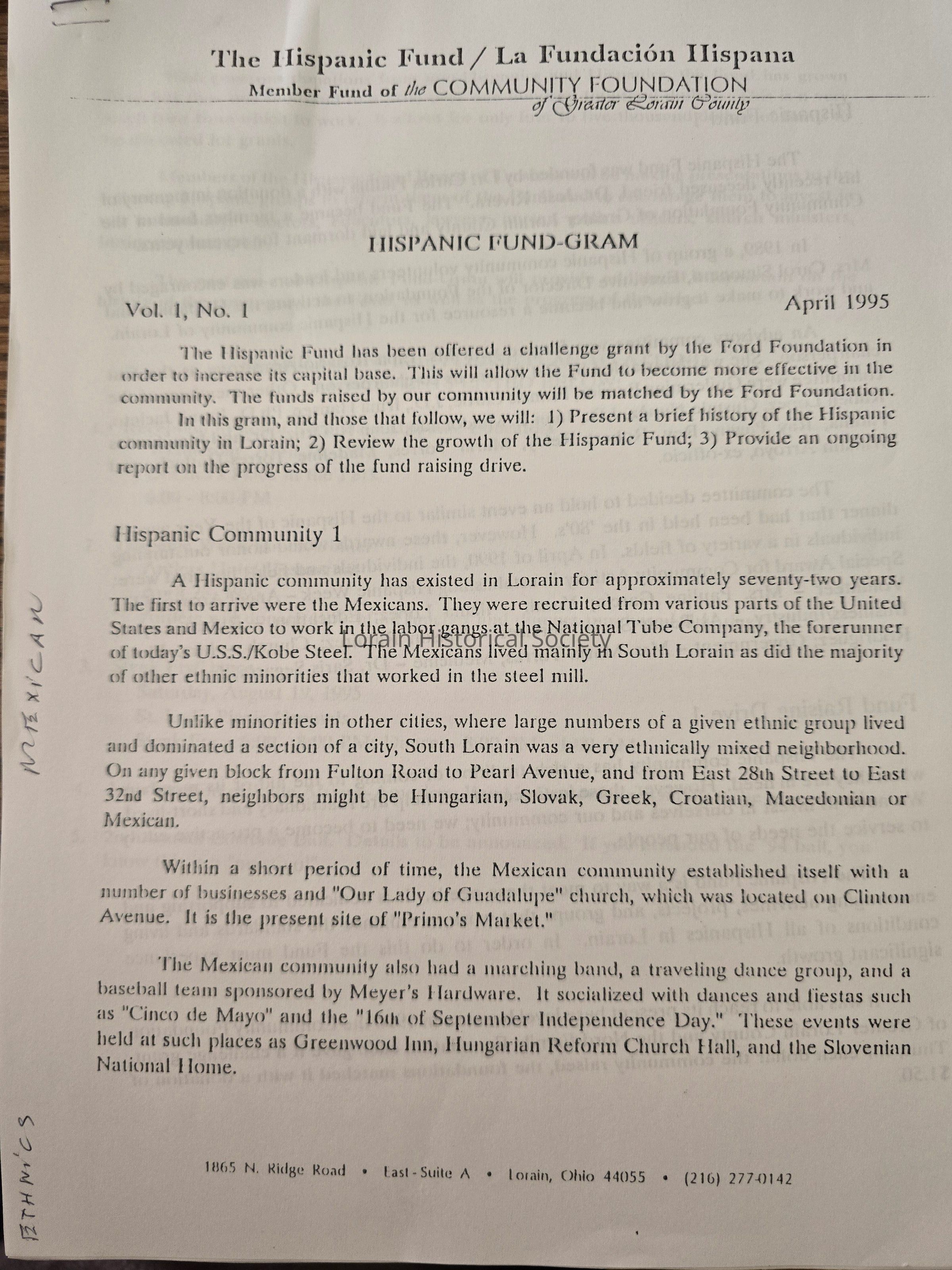 Fund-Gram articles include history on the Latino community in Lorain.Archive Details