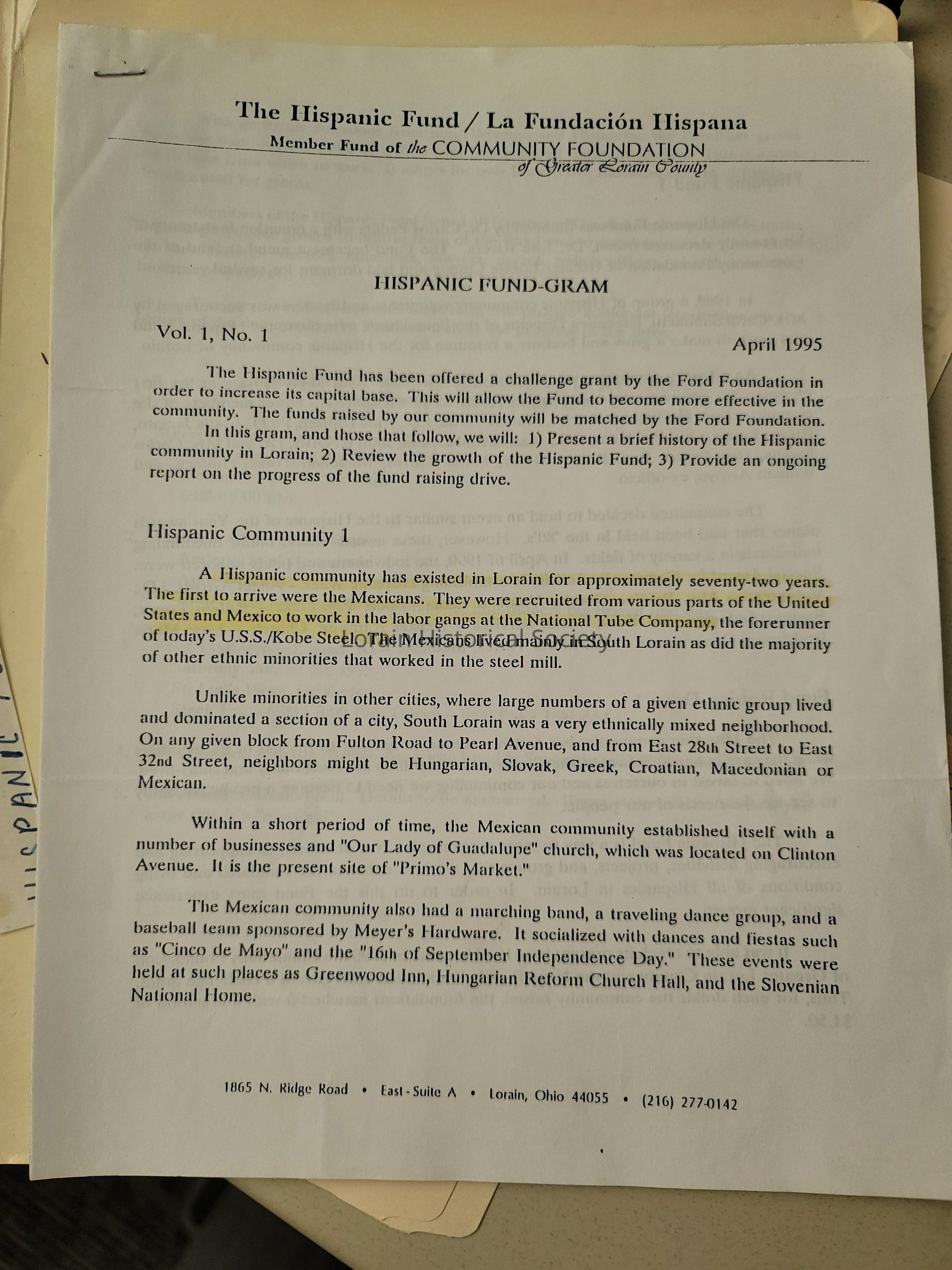 Hispanic Fund / La Fundacion Hispania, Member Fund of the Community Foundation of Lorain County