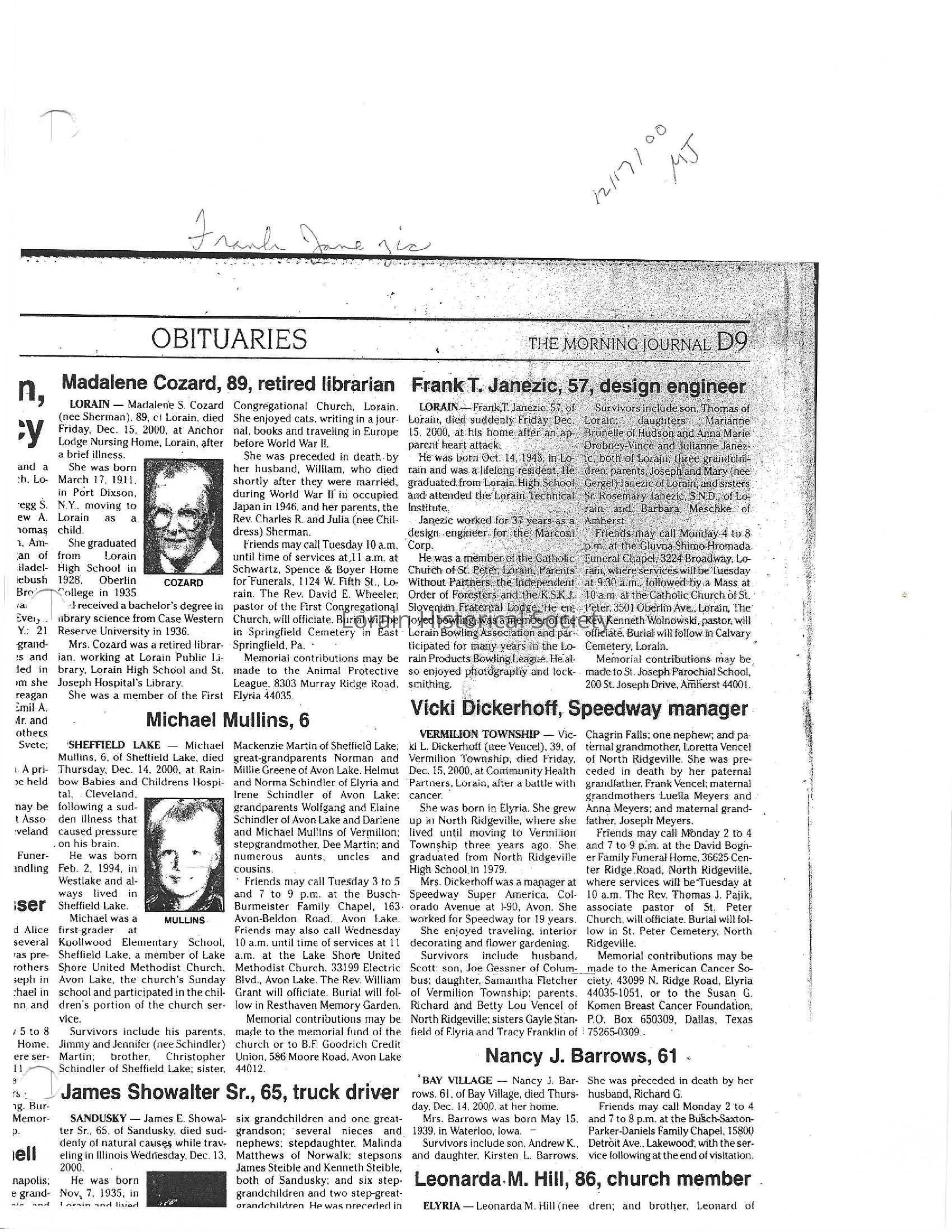 Janezic, Frank T obit