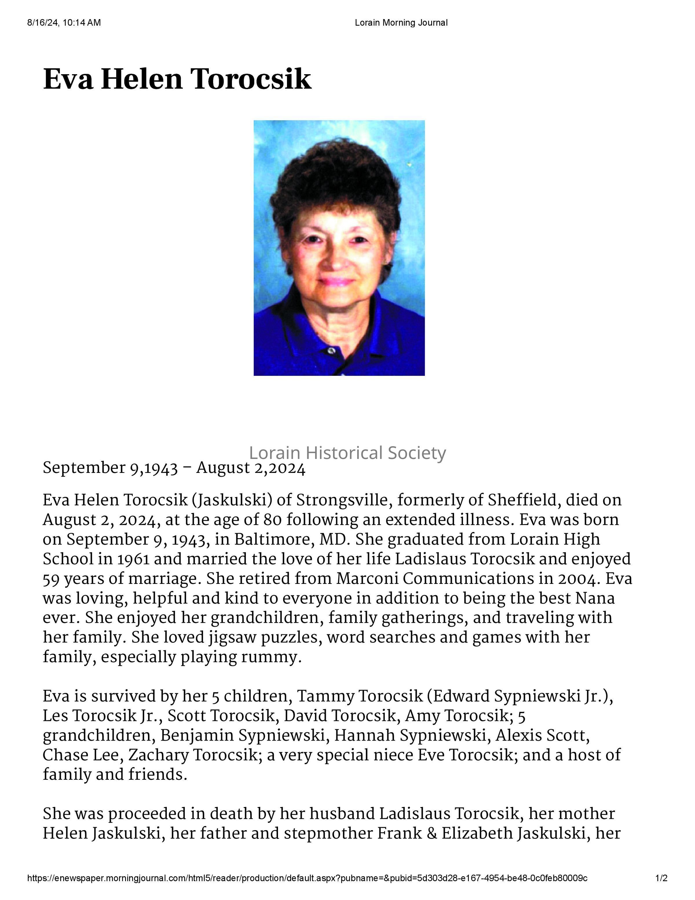 Jaskulski Torocsik, Eva Helen obit