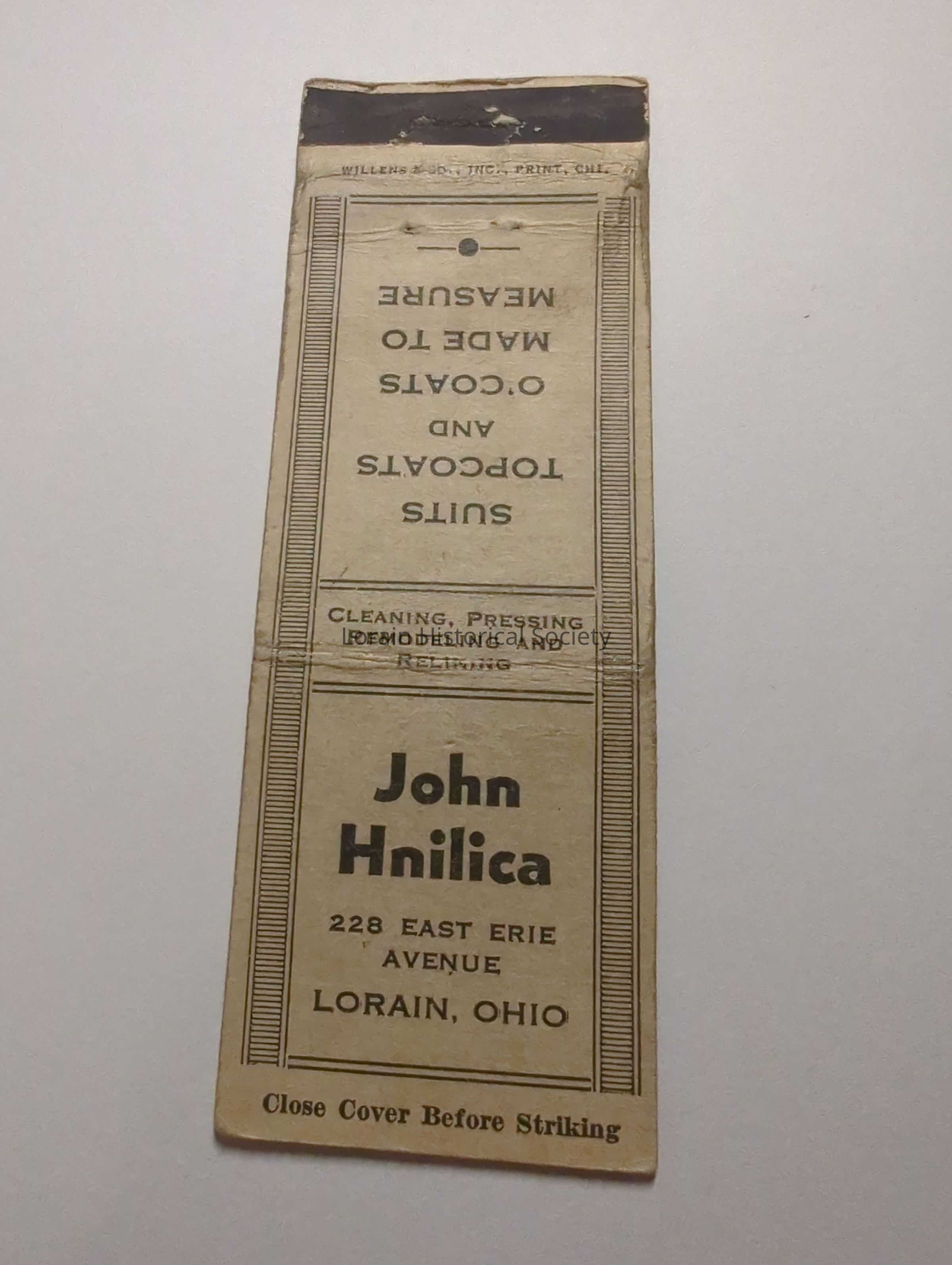 A collection of matchbook covers advertising Lorain, Ohio businesses, social clubs, bars, restaurants, associations from the 1930's through the 1950's.Acquisition