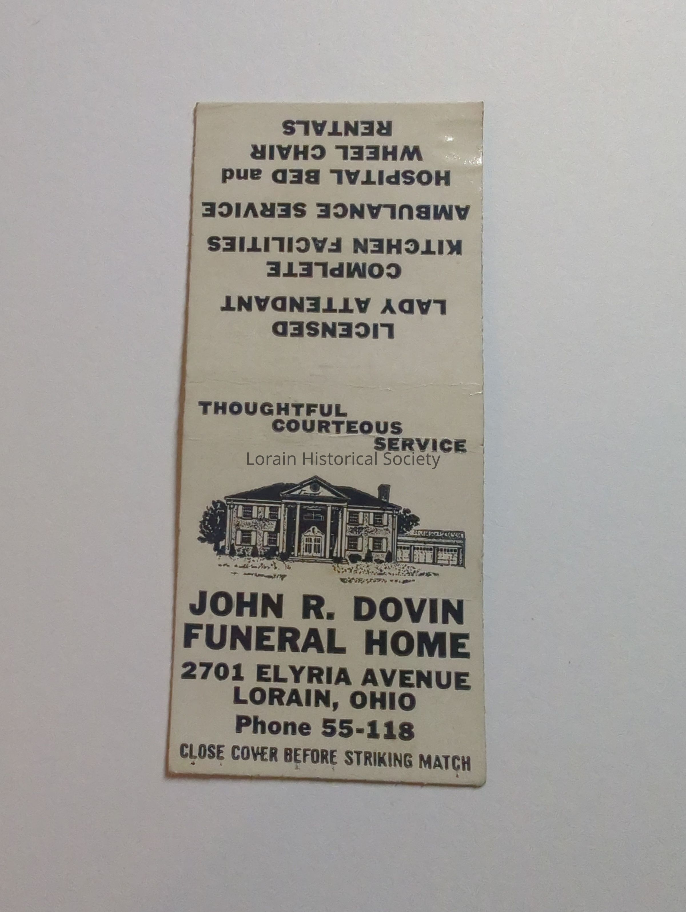 A collection of matchbook covers advertising Lorain, Ohio businesses, social clubs, bars, restaurants, associations from the 1930's through the 1950's.Acquisition