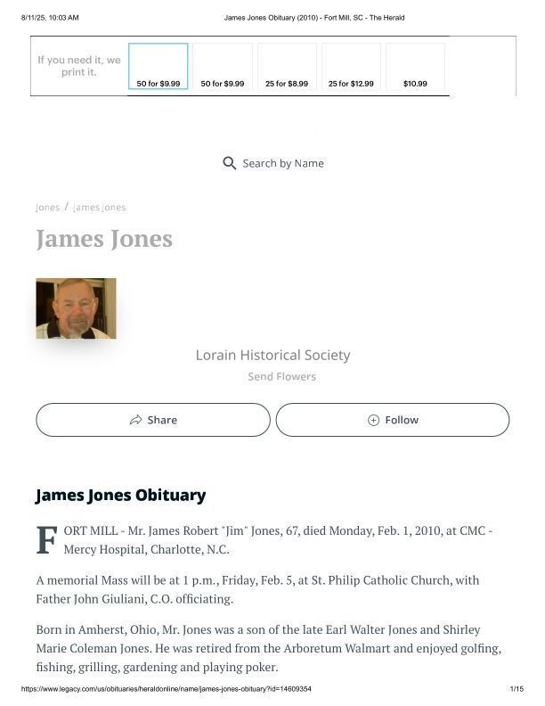 Jones, James Obituary (2010) - Fort Mill, SC - The HeraldScope and Content