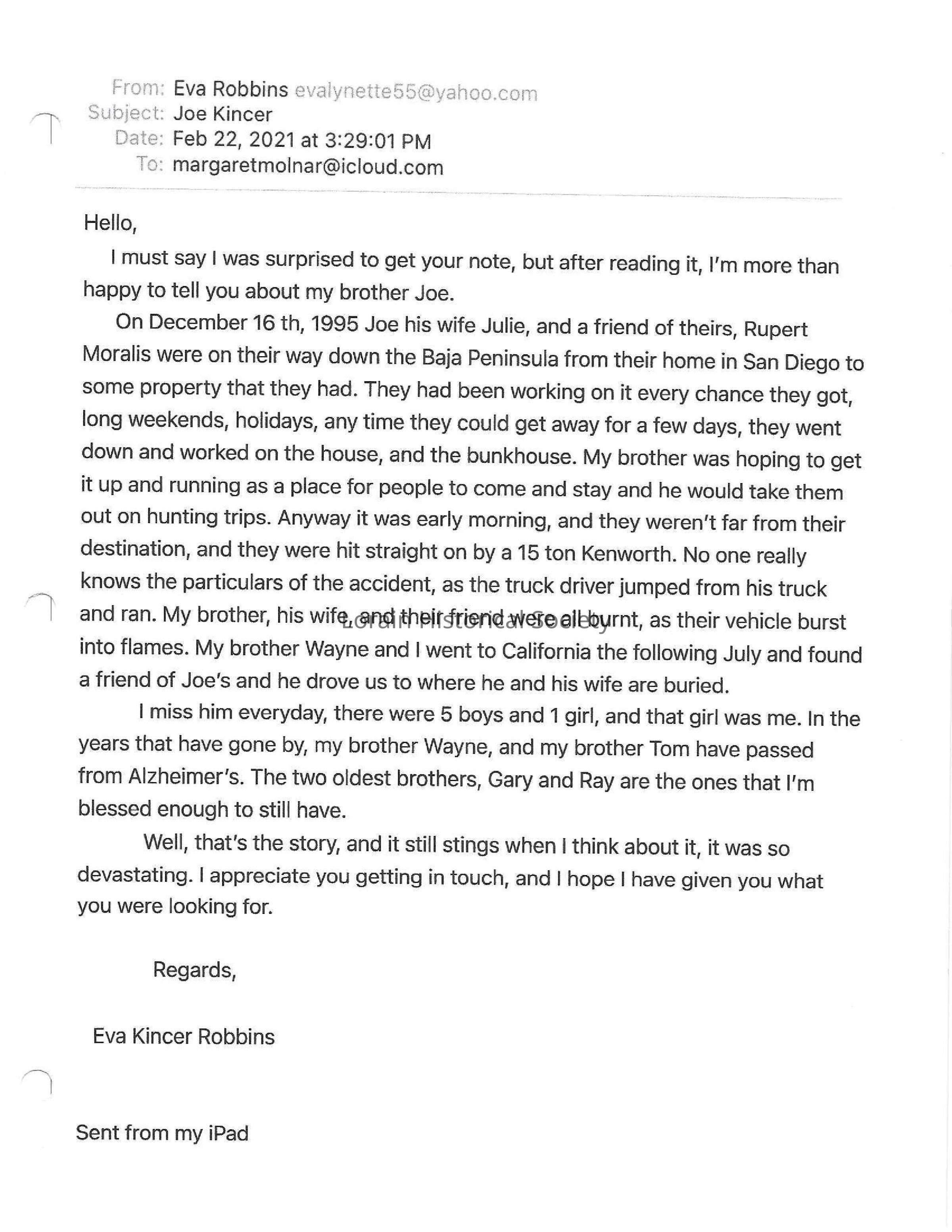 Kincer, Joe obit