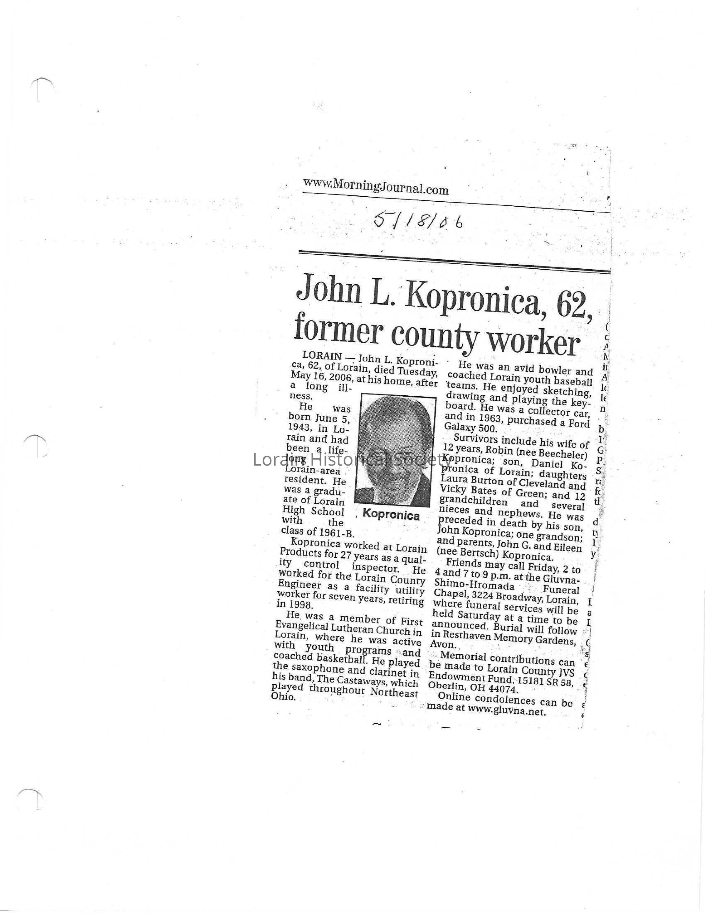 Kopronica, John L obit