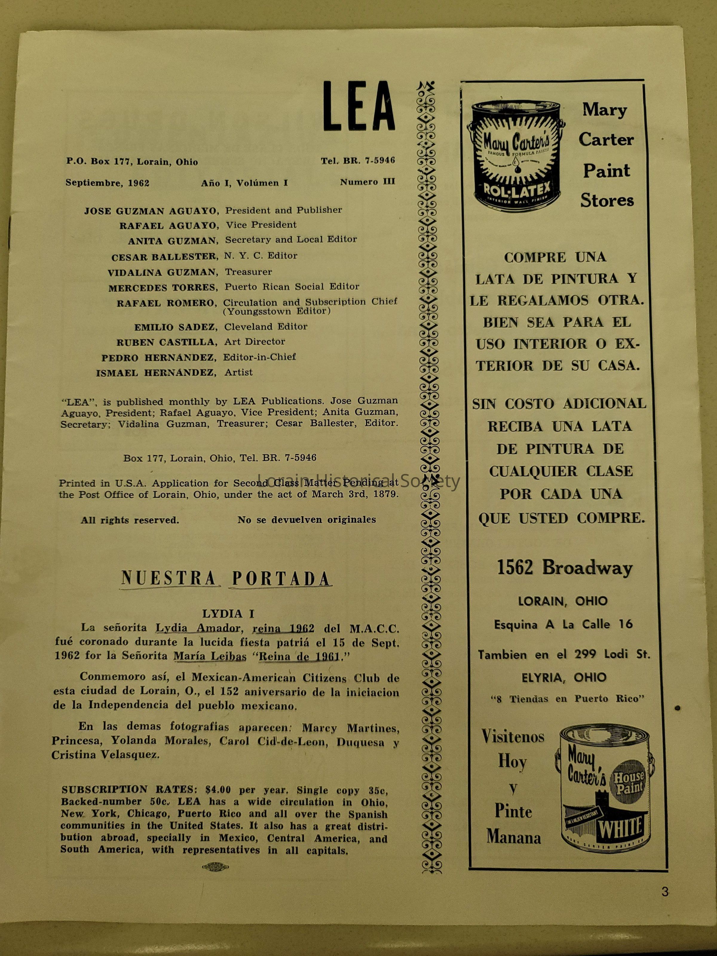 LEA Newsletter, September 1962.Collection