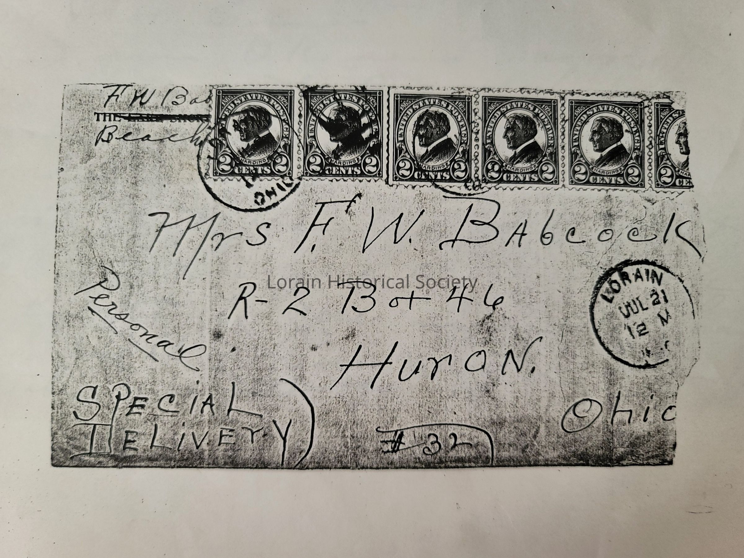 Envelope addressed to Mrs. F.W. Babcock (Huron, Oh)