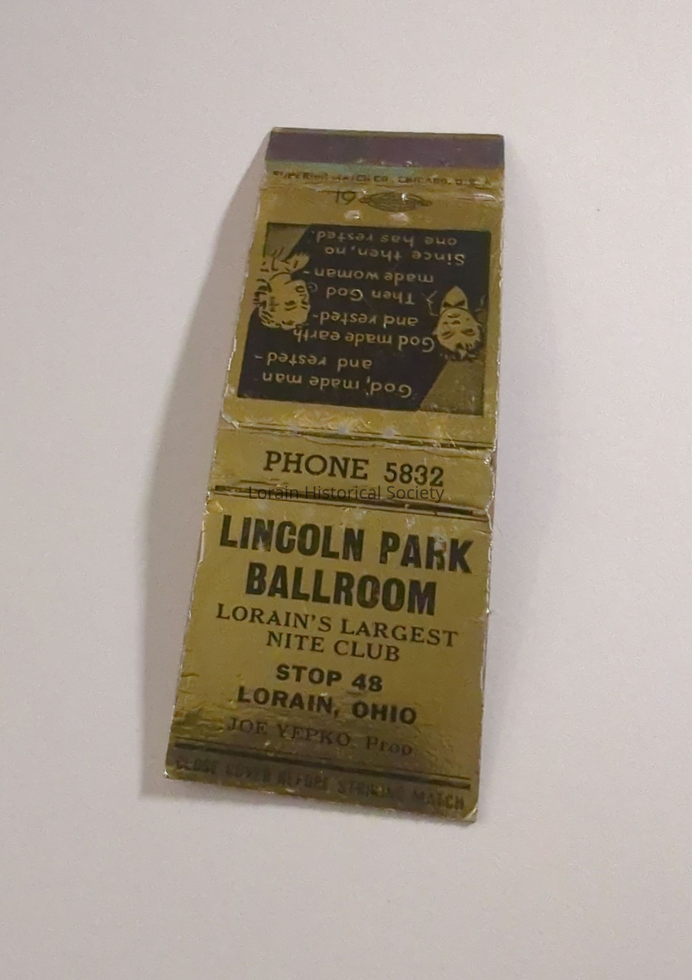 A collection of matchbook covers advertising Lorain, Ohio businesses, social clubs, bars, restaurants, associations from the 1930's through the 1950's.Acquisition