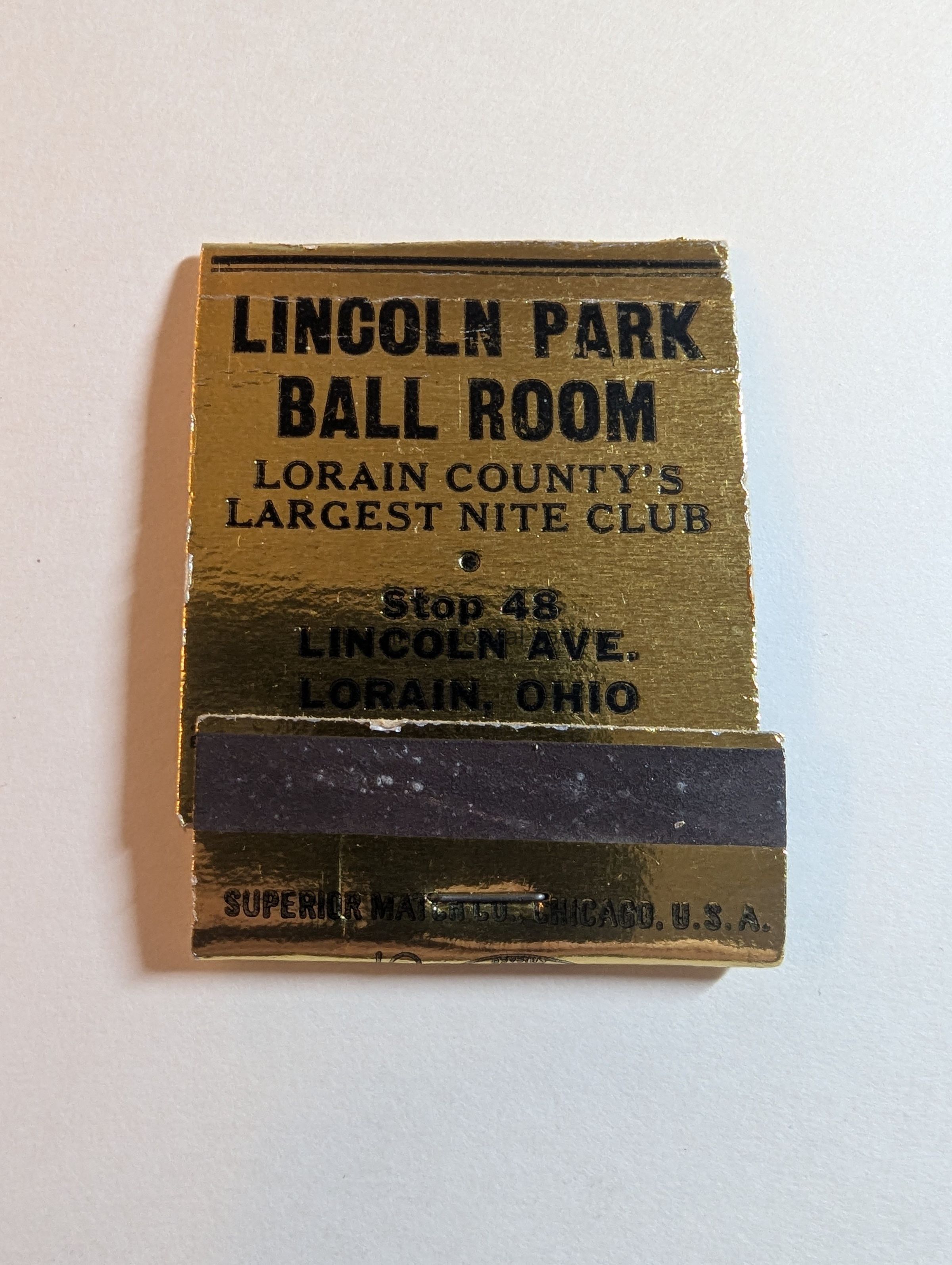 Match folder Lincoln Ball Room Lorain County's Largest Night Club, Stop 48 Lincoln Ave., Lorain, Ohio.Acquisition