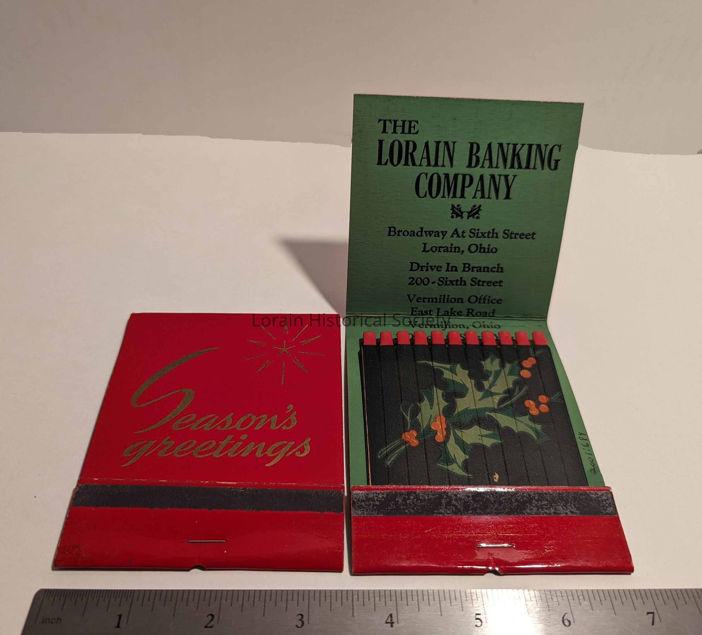 (2)Red seasons greeting matchbks.-Lorain BankingCo.