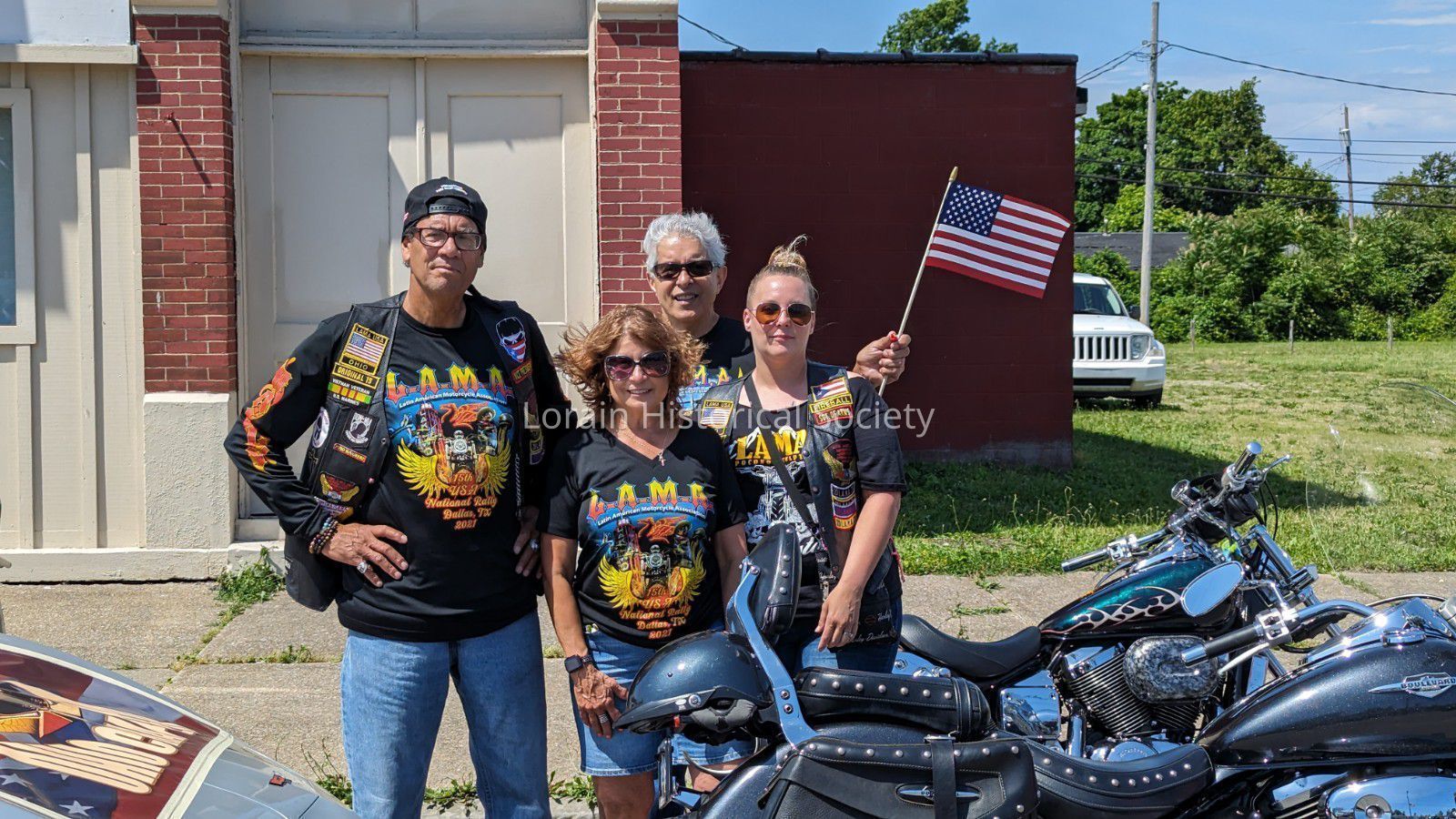 Photo of four members of the Lorain chapter of the Latin American Motorcycle Association (L.A.M.A) in 2023.Collection