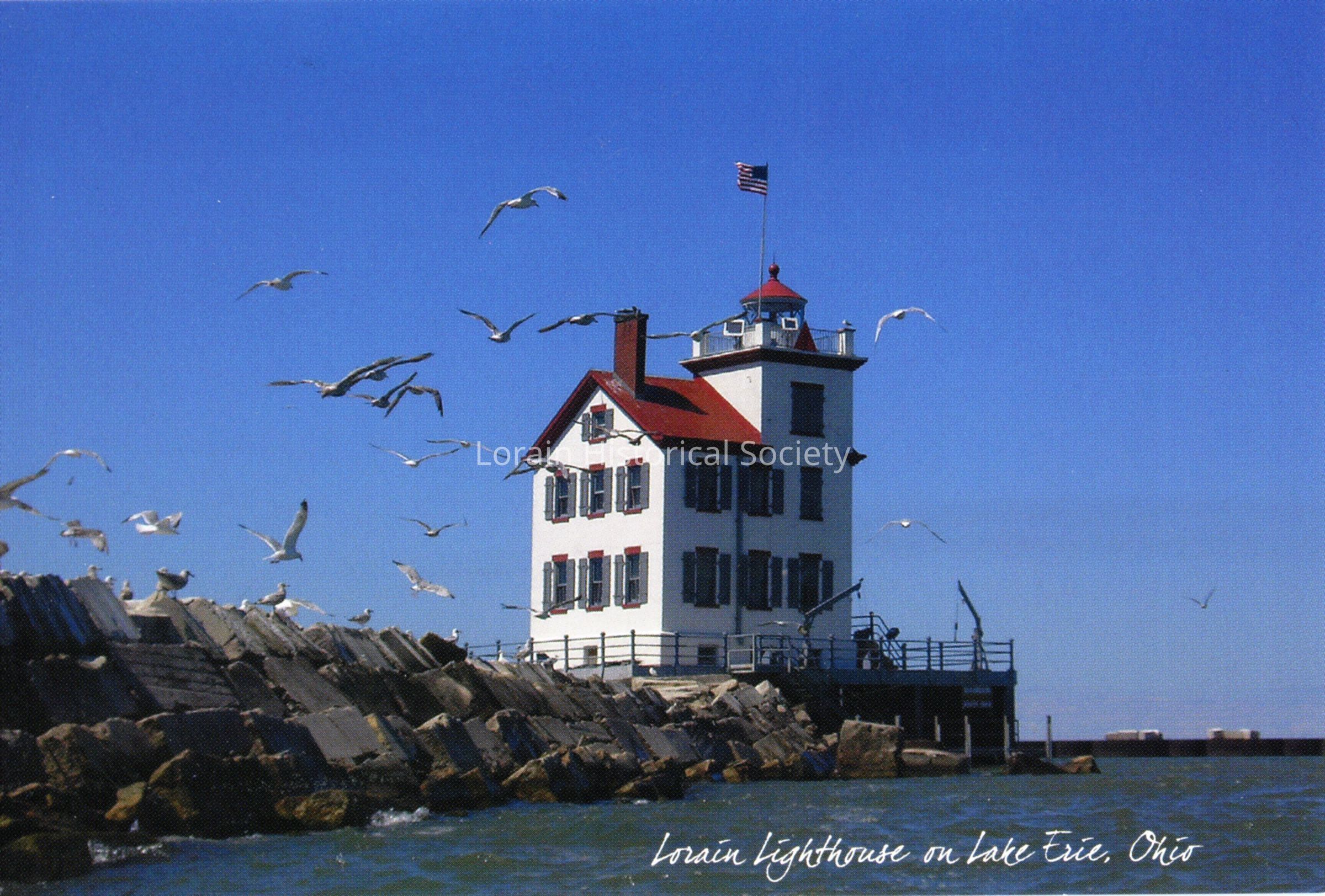 A postcard of the Lorain lighthouse on Lake Erie Ohio.