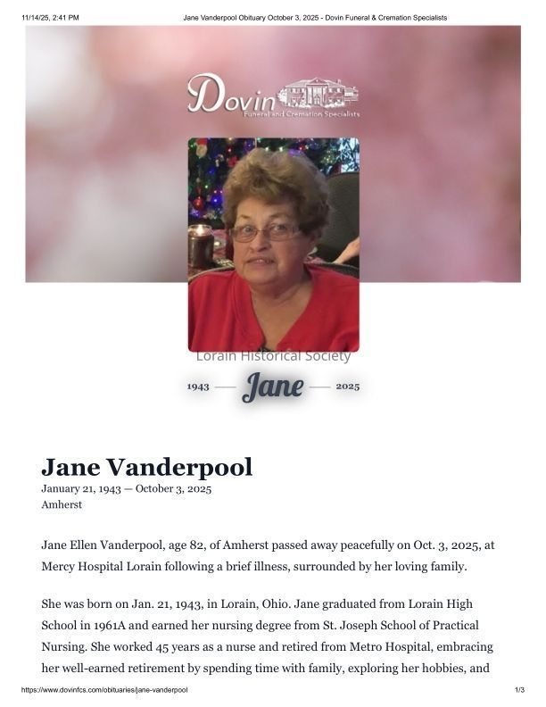 Jane (Lorence) Vanderpool obituary, Lorain High School Class of 1961ACollection