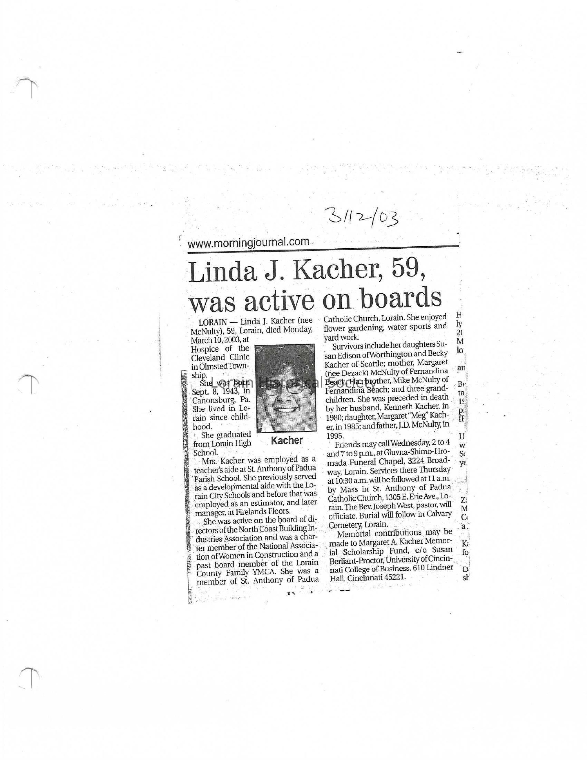 McNulty, Linda J Kacher obit