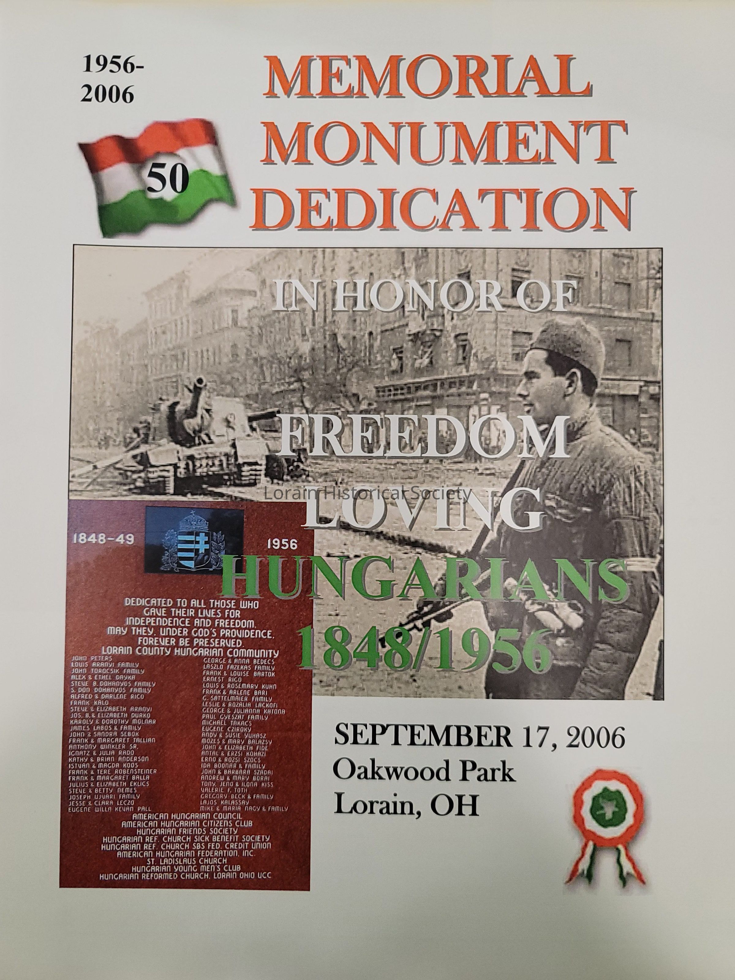 Two copies "Memorial Monument Dedication" book in honor of Freedom Loving Hungarians 1848/1956 9-17-2006 Oakwood Park, Lorain, OHAcquisition