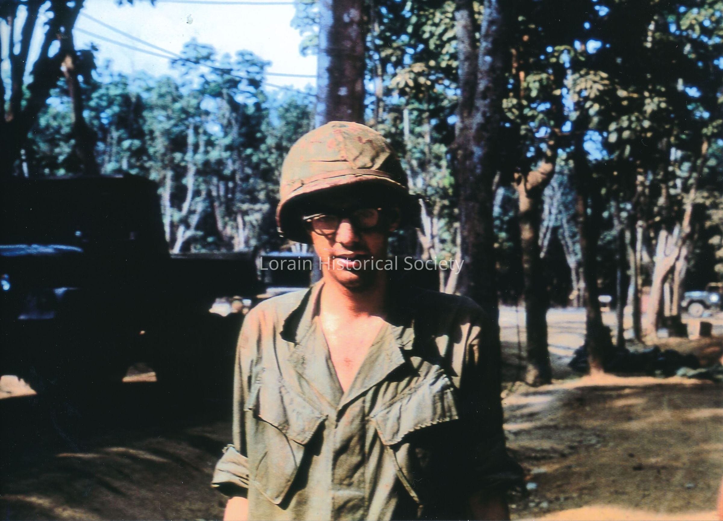 Photo of Ralph DeJesus' friend, Merkel, in Phouc Vienh, Vietnam during the Vietnam War. Merkel and DeJesus were in the U.S. Army. Merkel is wearing his uniform.Collection