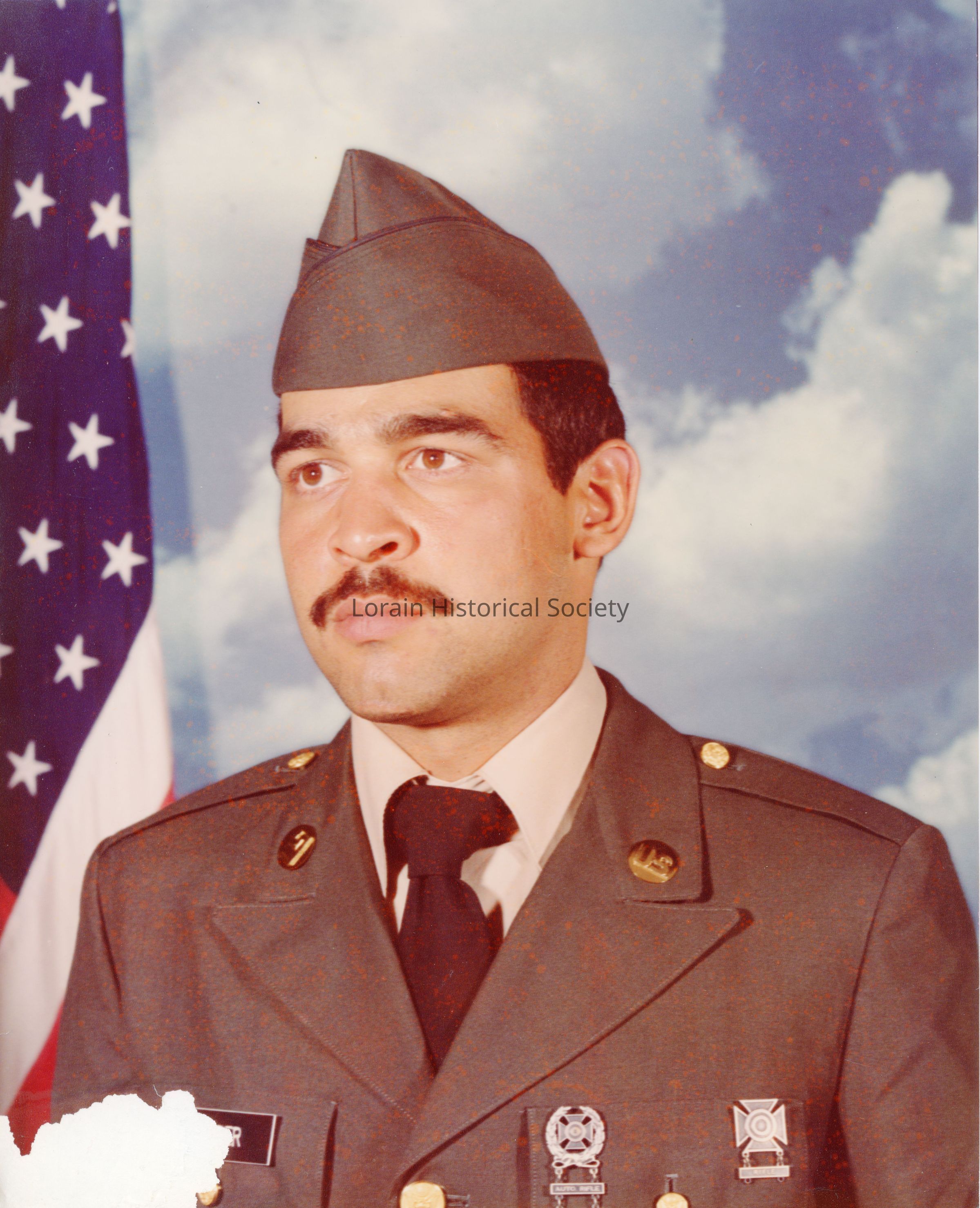 Portrait of Mike Ferrer after graduating from his U.S. Army boot camp in Fort Benning, Georgia in 1980. Mike is wearing his official dress uniform as well as a marksmanship medal.Collection