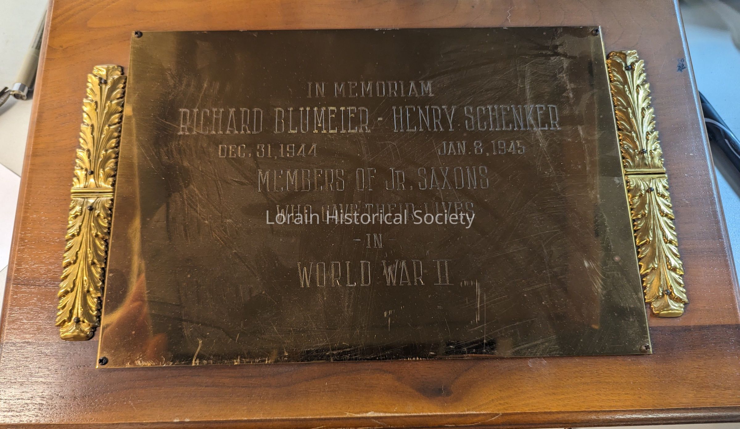 **Saxon Club plaque for Richard Blumeier and Henry Schenker who lost their lives in WWII