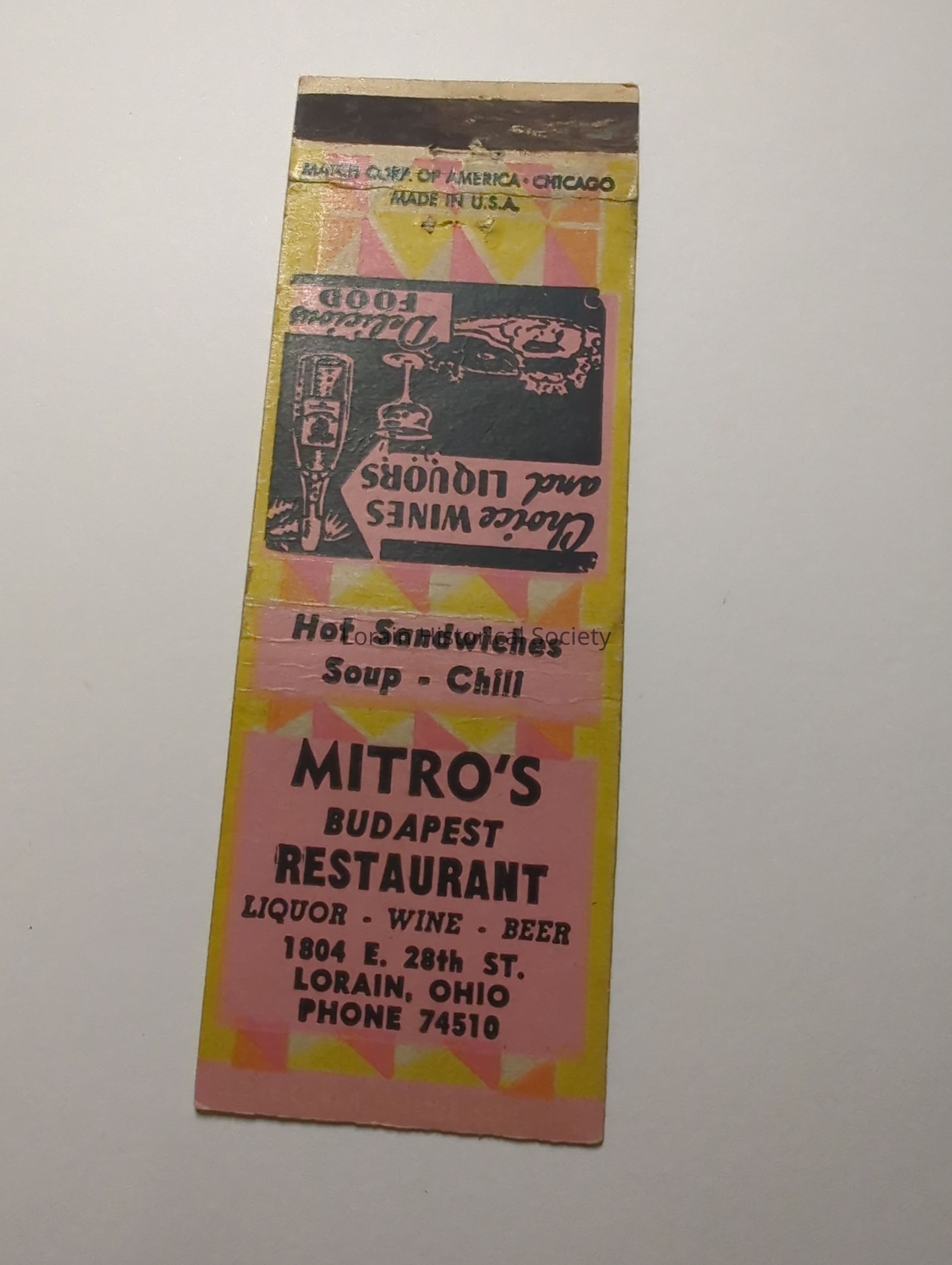 A collection of matchbook covers advertising Lorain, Ohio businesses, social clubs, bars, restaurants, associations from the 1930's through the 1950's.Acquisition