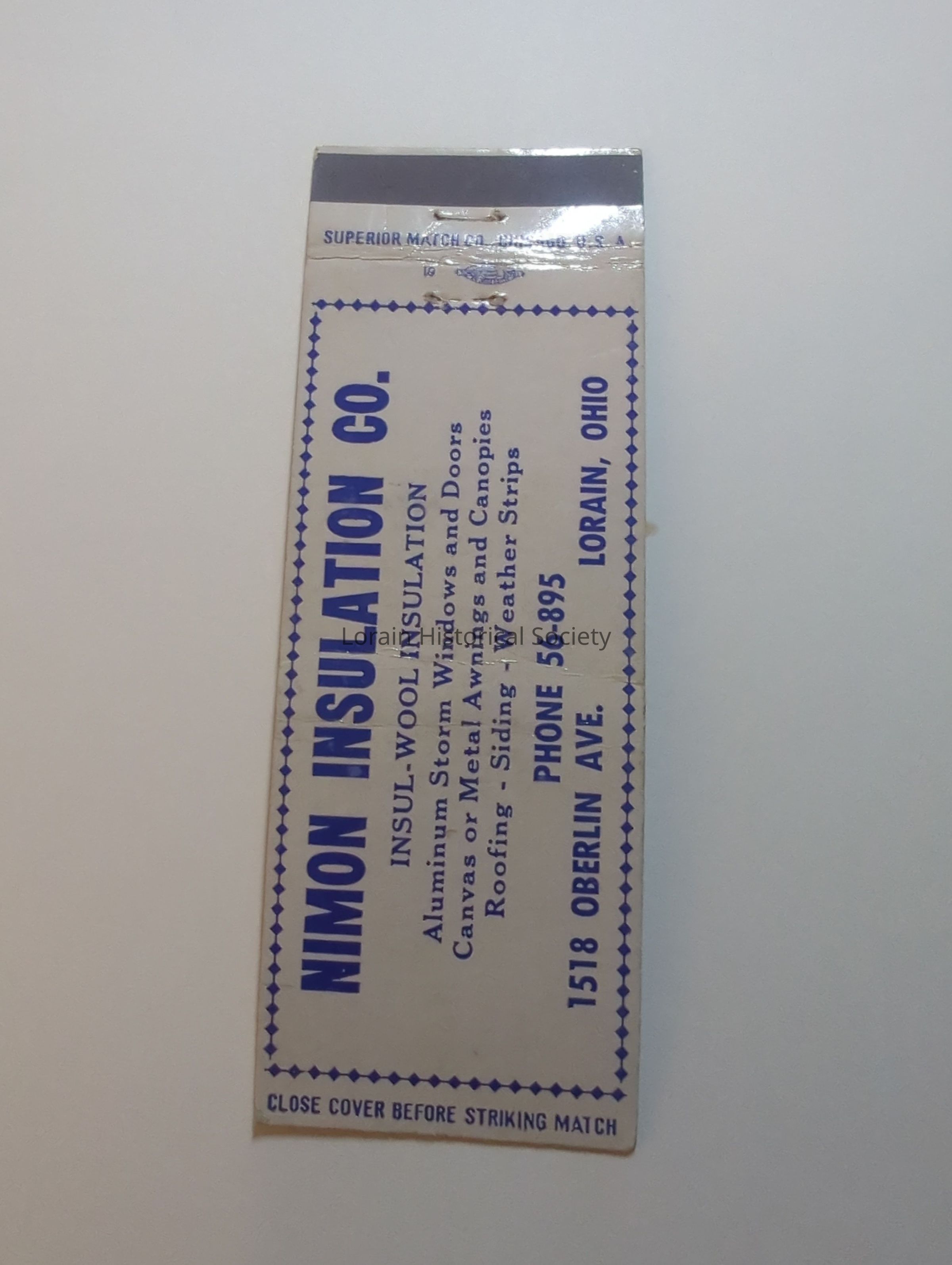 A collection of matchbook covers advertising Lorain, Ohio businesses, social clubs, bars, restaurants, associations from the 1930's through the 1950's.Acquisition