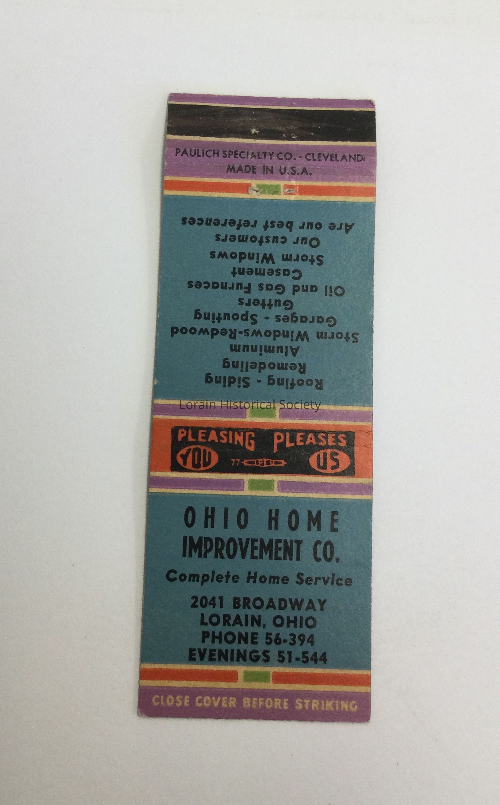 A collection of matchbook covers advertising Lorain, Ohio businesses, social clubs, bars, restaurants, associations from the 1930's through the 1950's.Acquisition