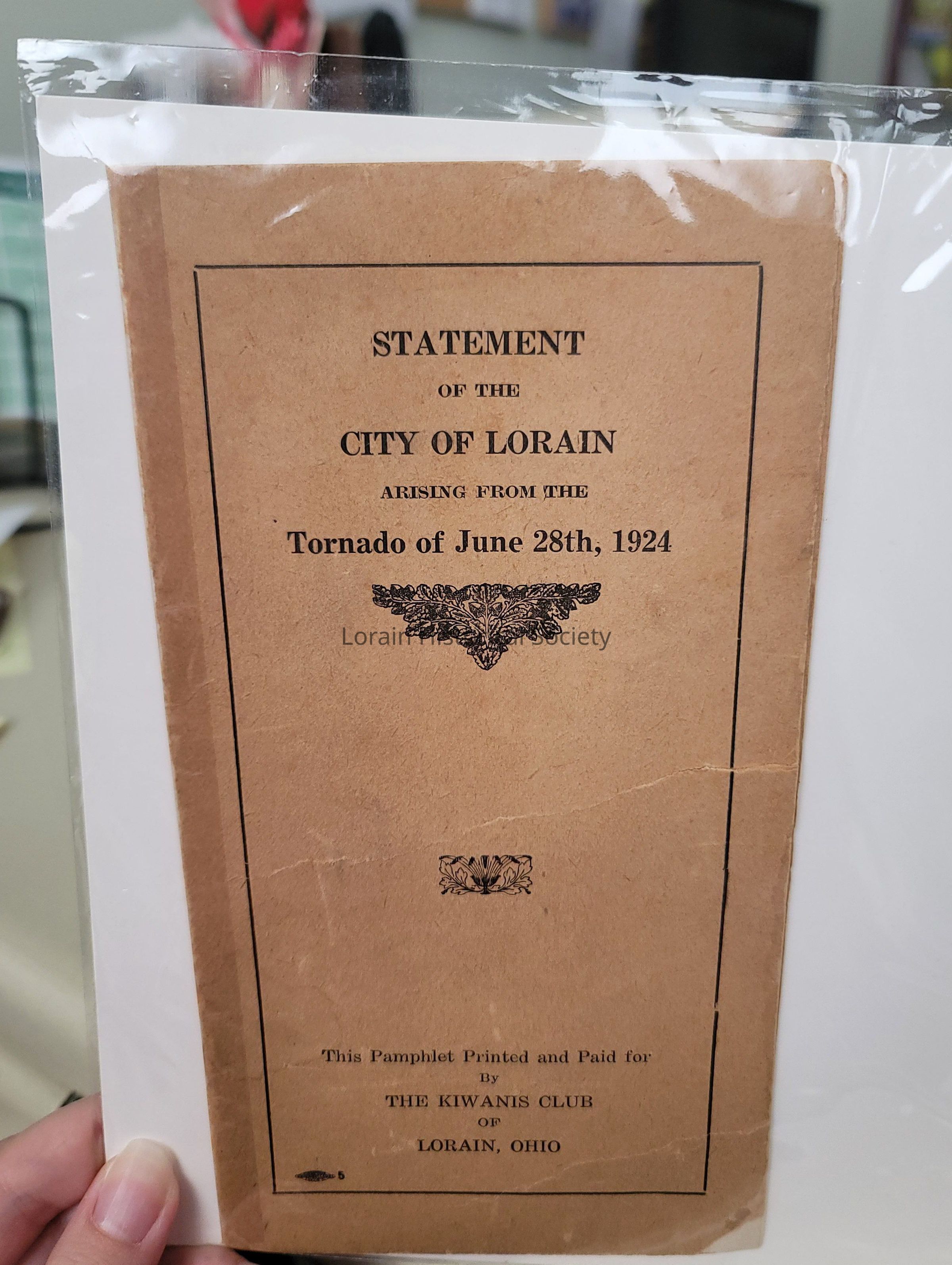 Statement of the City of Lorain Arising from Tornado of June 28, 1924 pamphlet printed and paid for by the Kiwanis Club of Lorain, OhioAcquisition