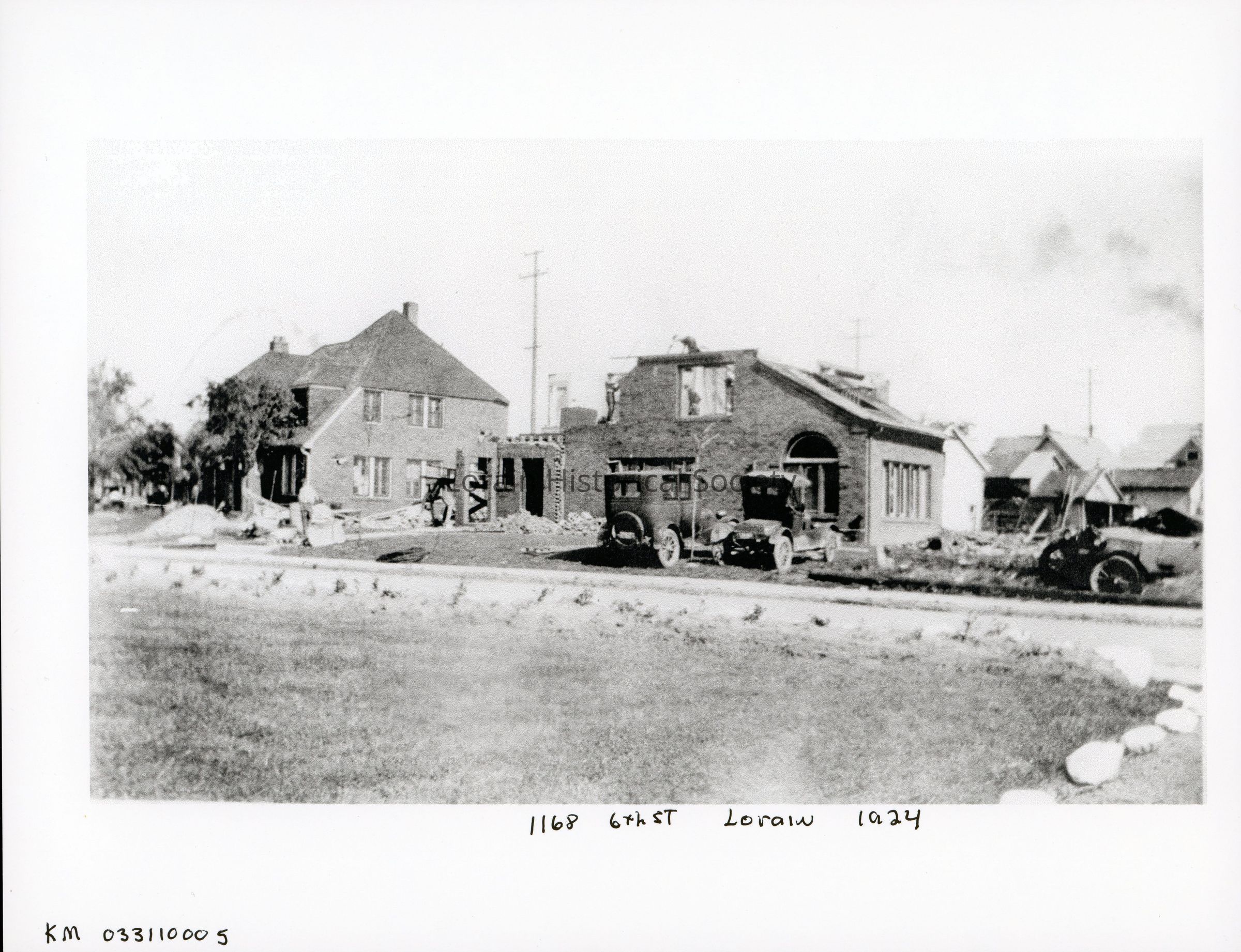 Photocopy is black and white view of houses on West Sixth Street showing damage, destruction and debris from 1924 Tornado. L to R: 1168 West Sixth Street, Helen and Fred Newhall Home; 1172 West Sixth Street, Jean and Ransom P. Hoffman Home.Acquisition