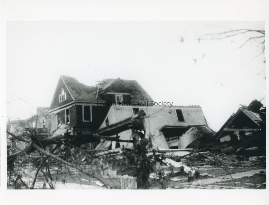 Photocopy is black and white view of unidentified houses on West Erie Avenue near West Fifth Street showing damage, destruction and debris from 1924 Tornado.Photograph Details