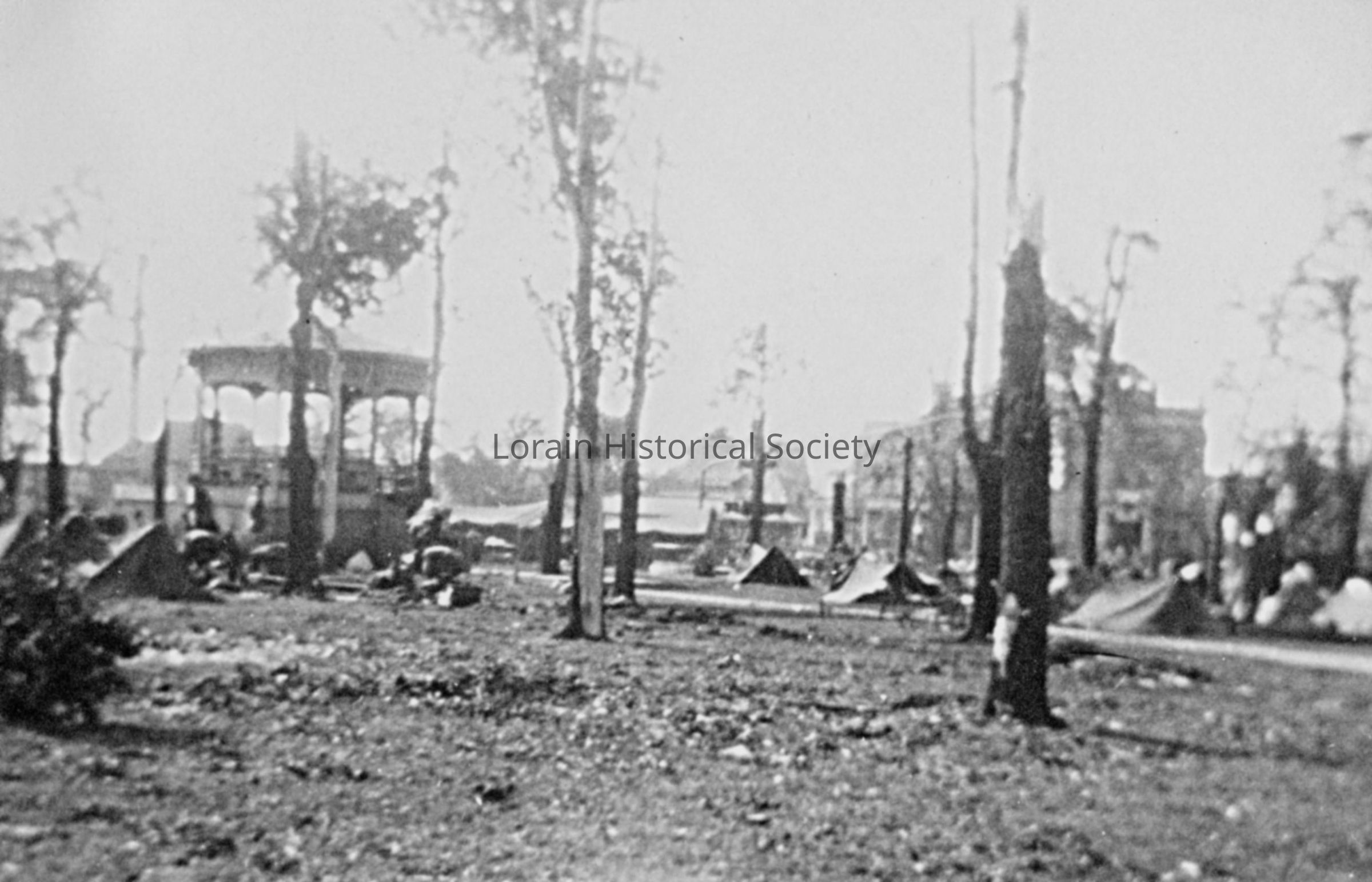 Photograph is black and white view of Washington Avenue Park, SE Corner of West Erie Avenue and Washington Avenue, showing damage, destruction and debris from 1924 Tornado.Photograph Details