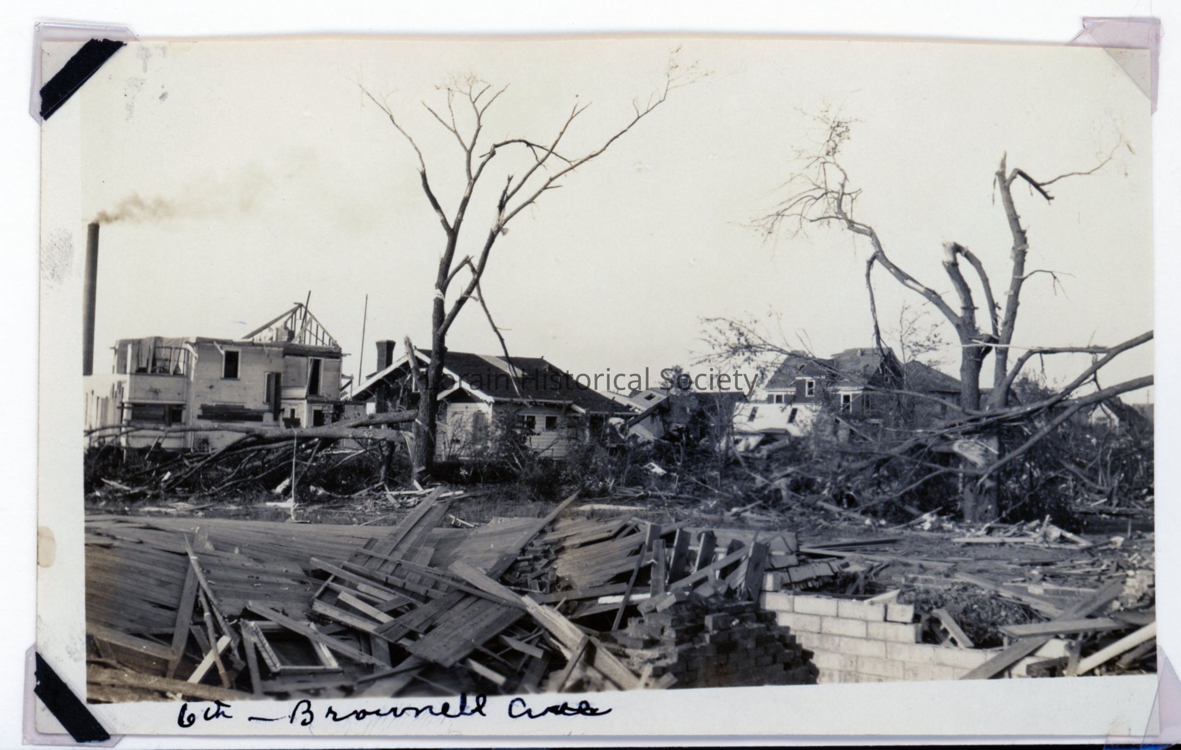 Photograph is view of West Sixth Street and Brownell Avenue showing damage and destruction from 1924 Tornado.Collection