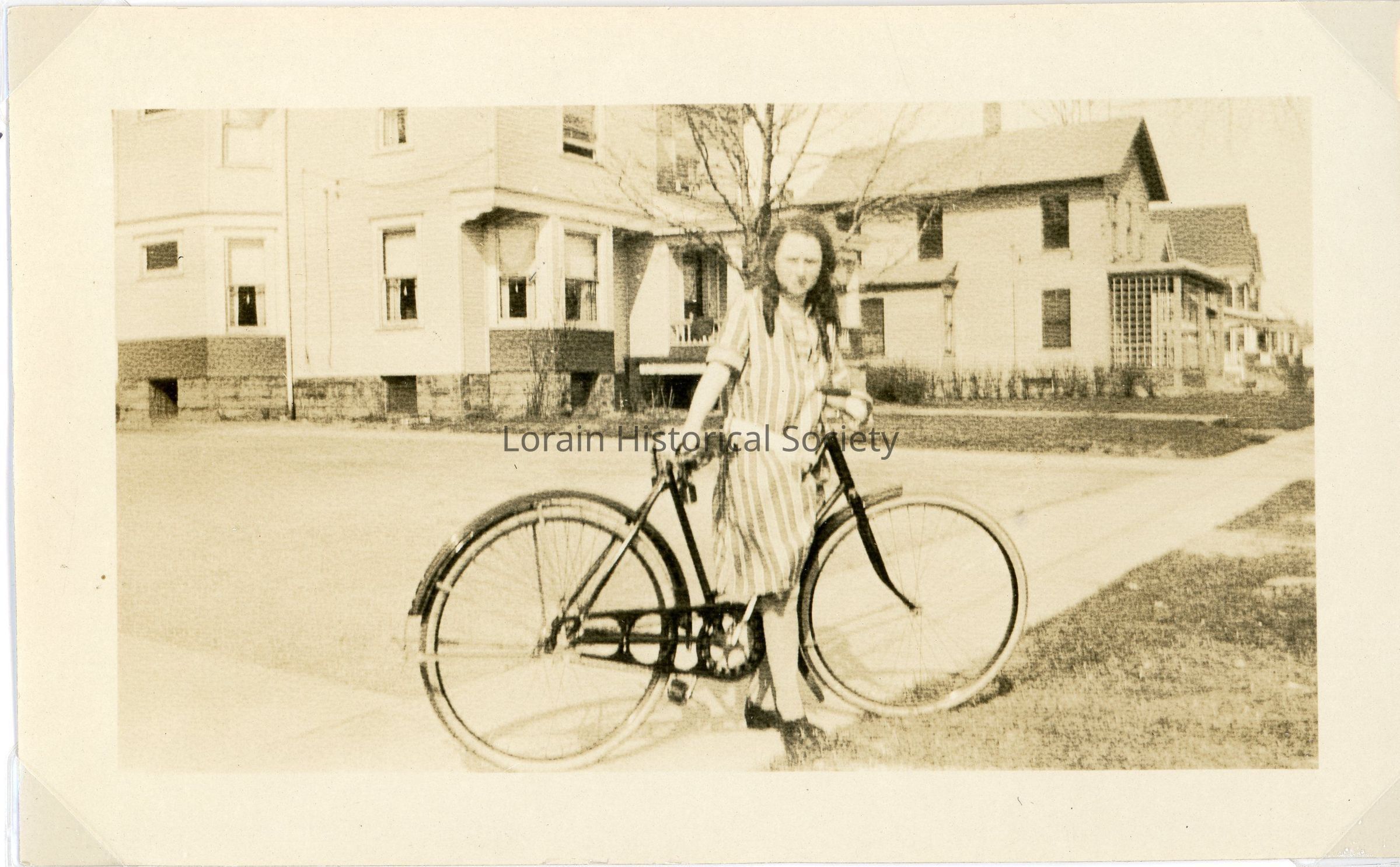 Photograph is black and white view of Jean Van Deusen, 1128 West Fifth Street; Next door is 1124 West Fifth Street, Clara L. and Herman E. Hageman home.Acquisition