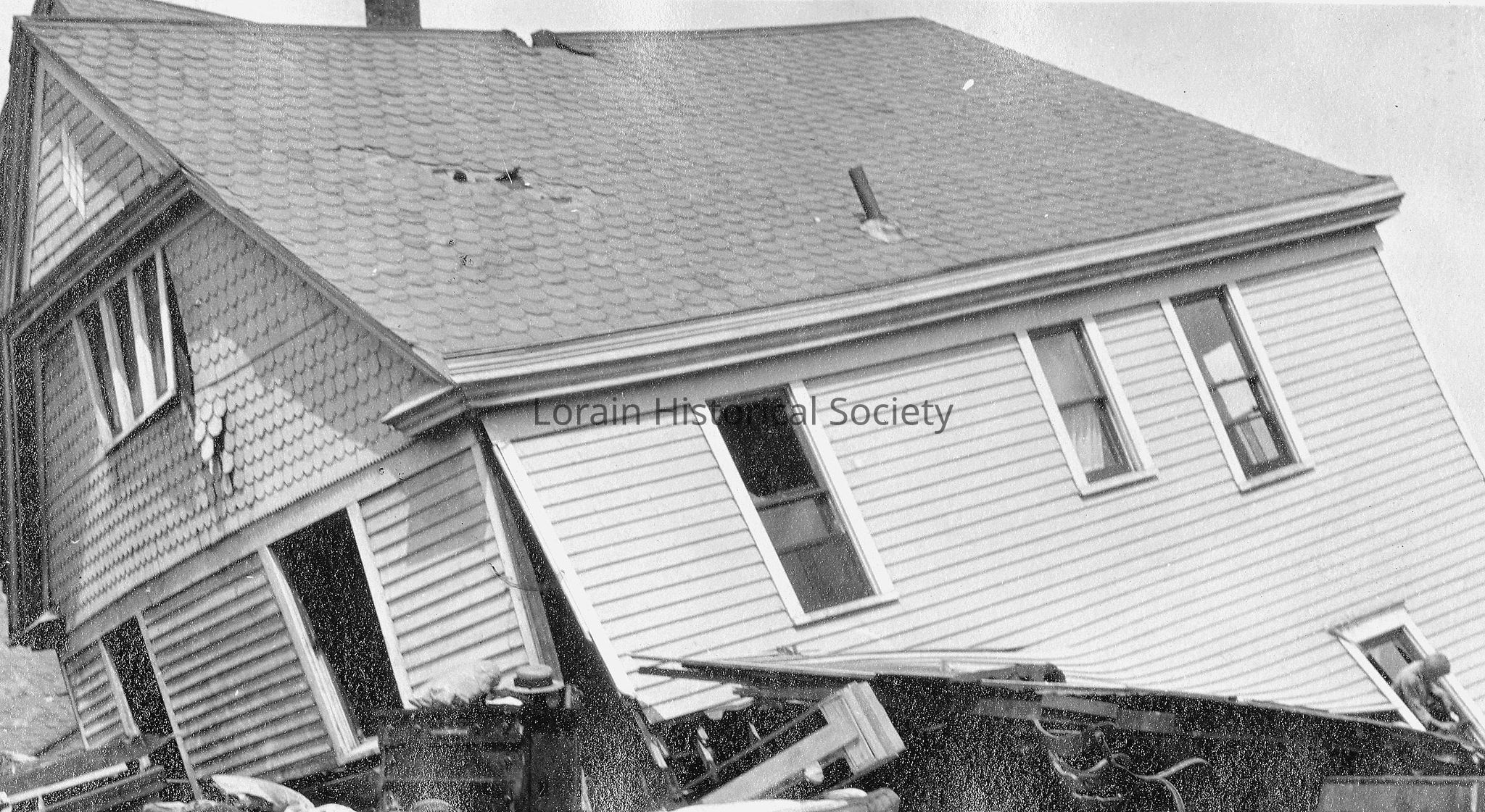 Note on back of photograph: "Lorain Tornado from Mrs. Mike Fago".Acquisition