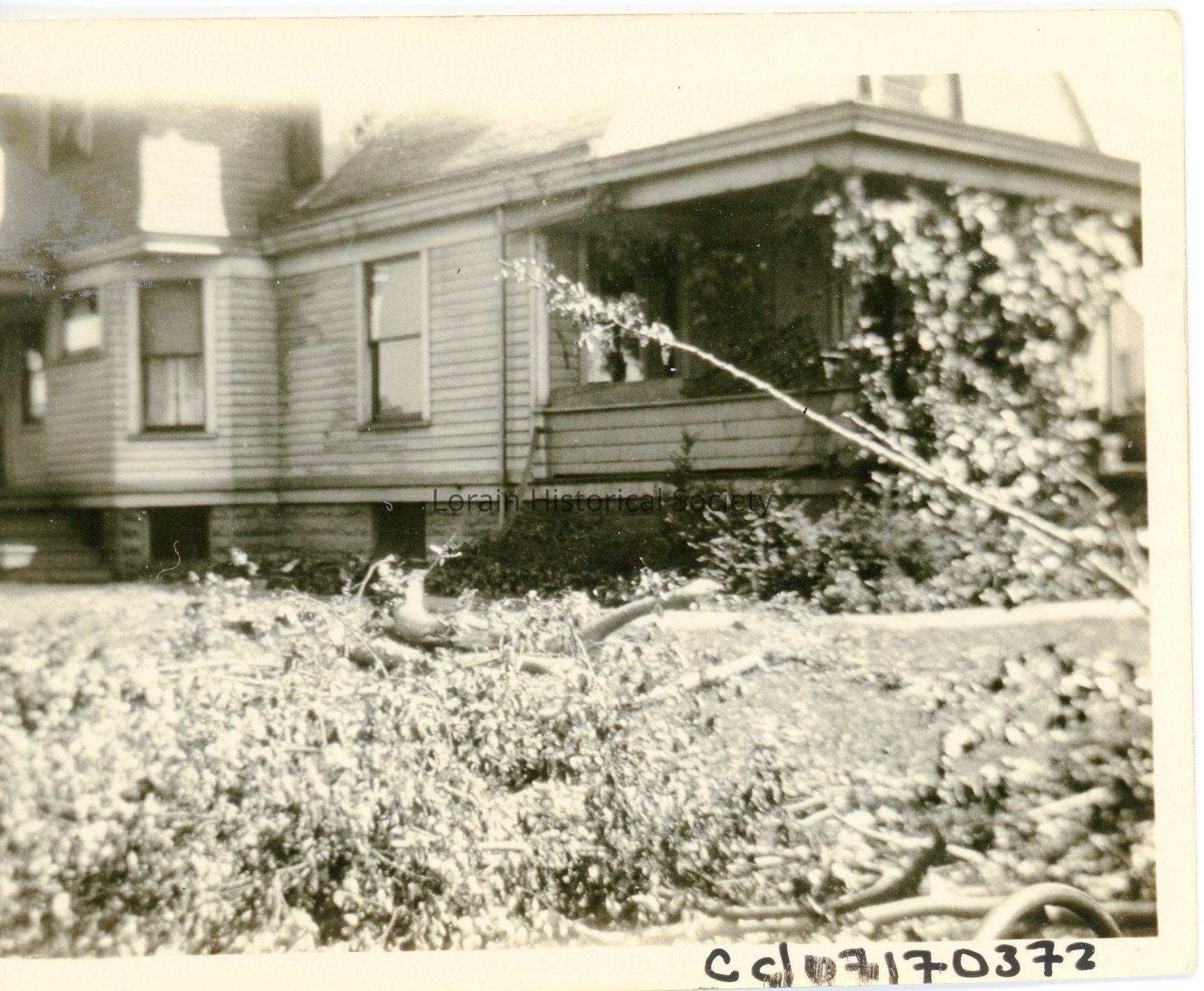 Photograph is black and white view of unidentified house showing damage and debris from 1924 Tornado.Acquisition
