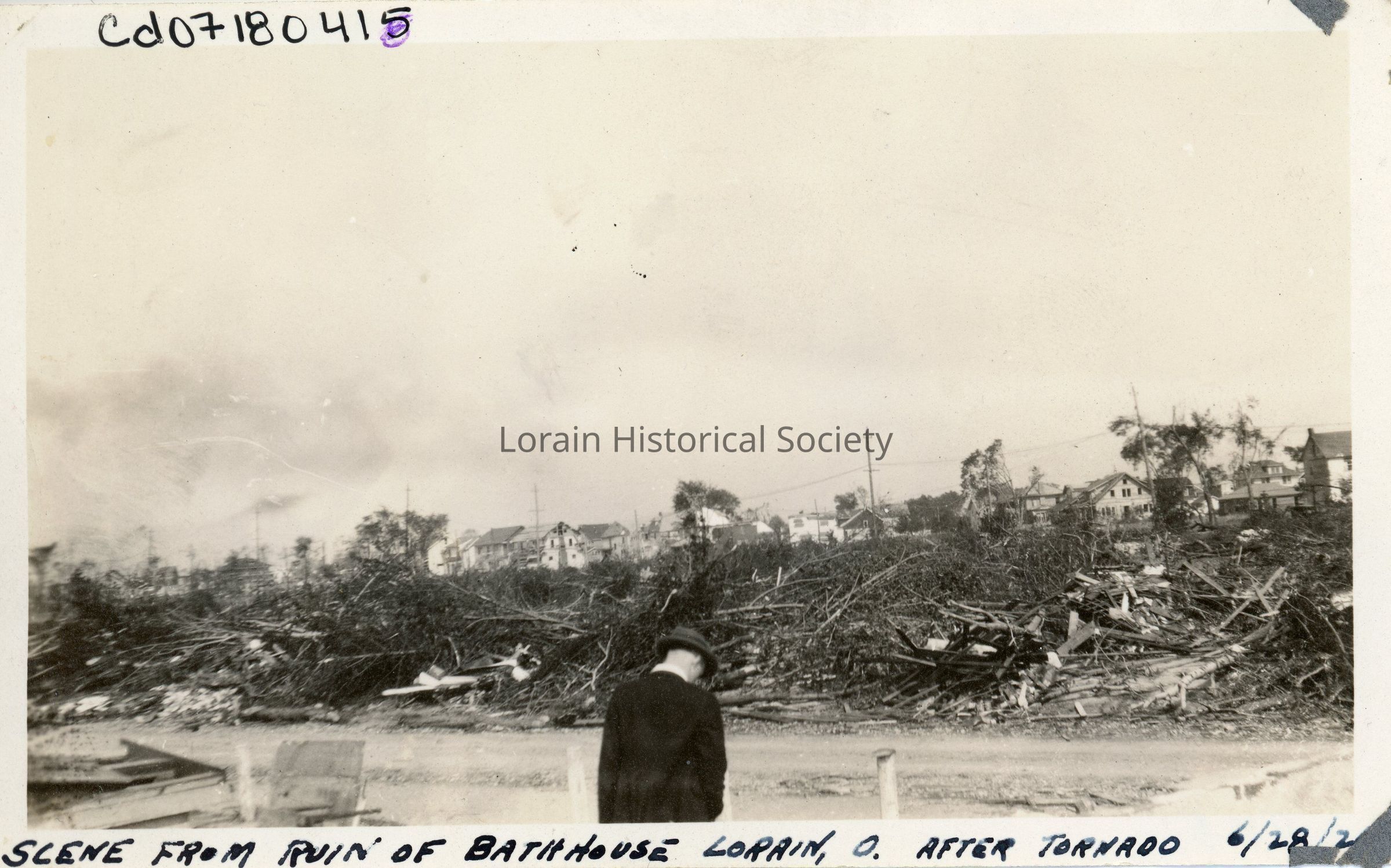 Written on photograph: "SCENE FROM RUIN OF BATHHOUSE LORAIN, O. AFTER TORNADO 6/28/24".