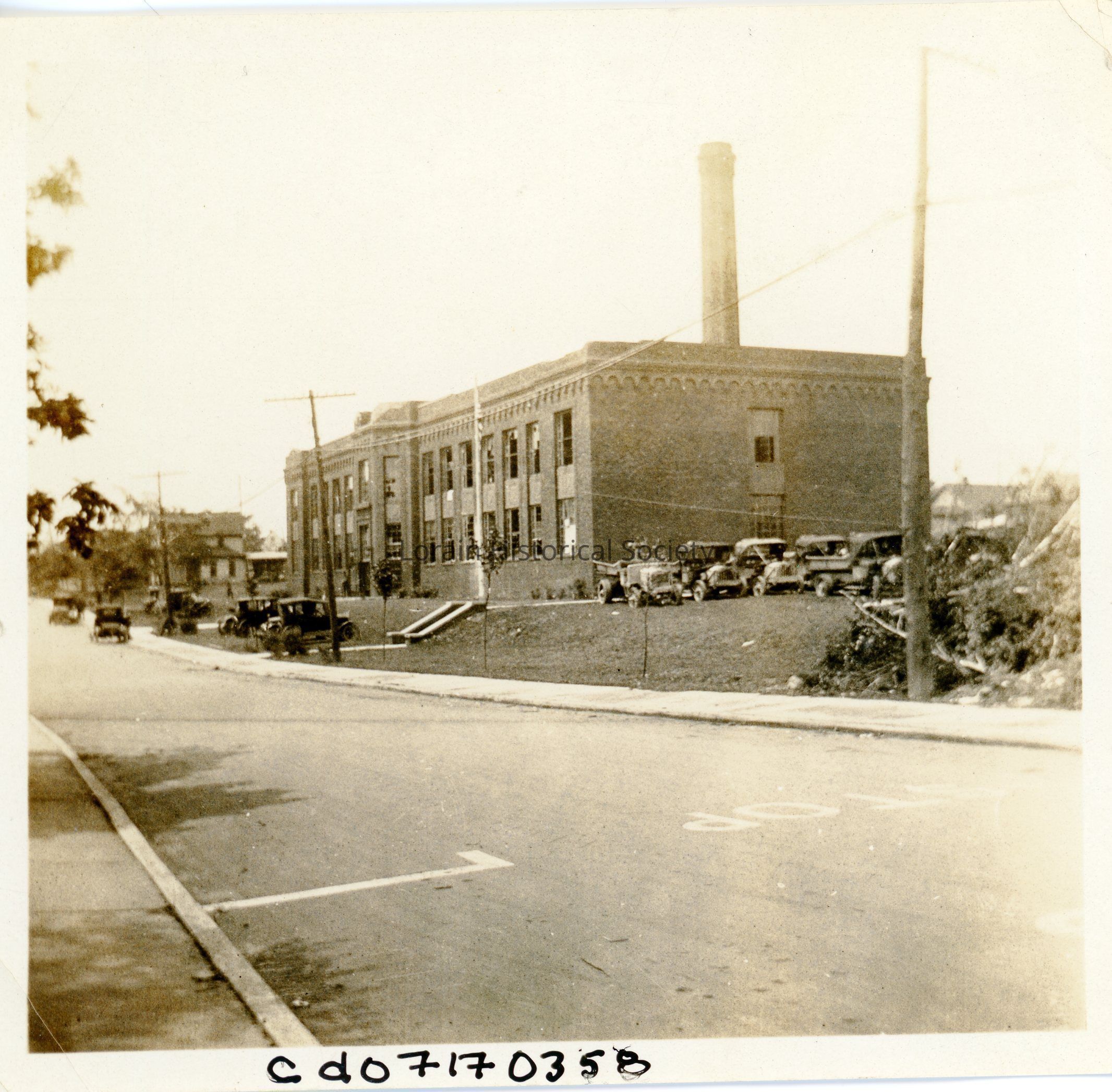 Photograph is black and white view of Irving Junior High School, West Fourth Street and Hamilton Avenue, where 112th Engineers O.N.G stayed after 1924 Tornado.