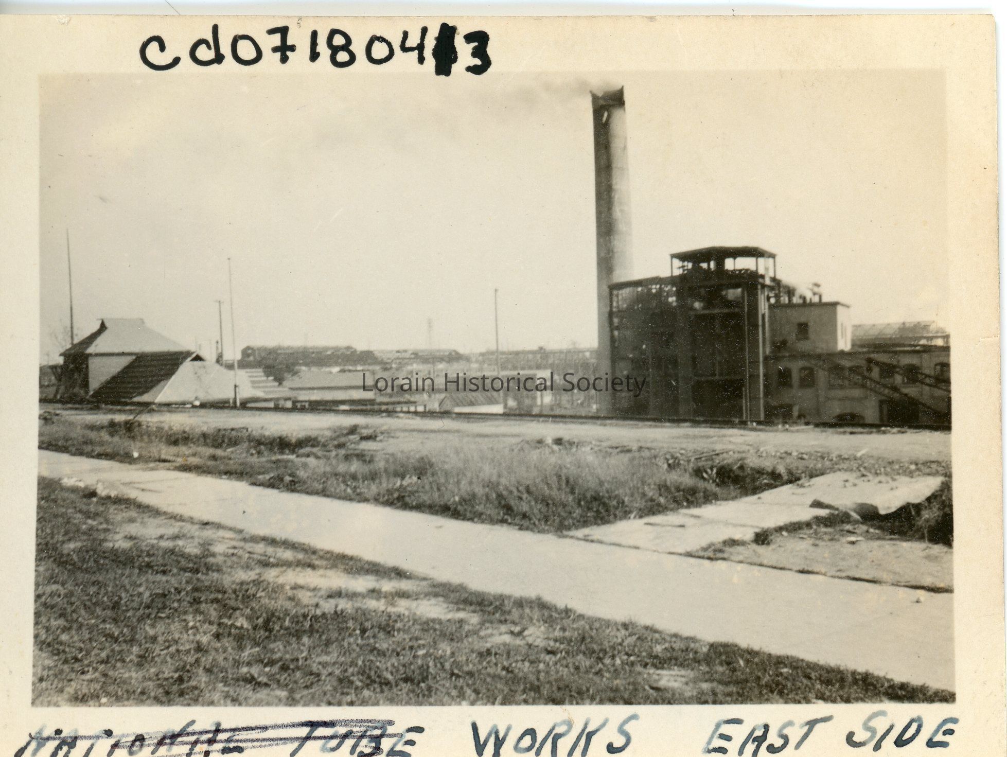 Photograph is black and white view of American Ship Yard, Lorain's east side after 1924 Tornado.
