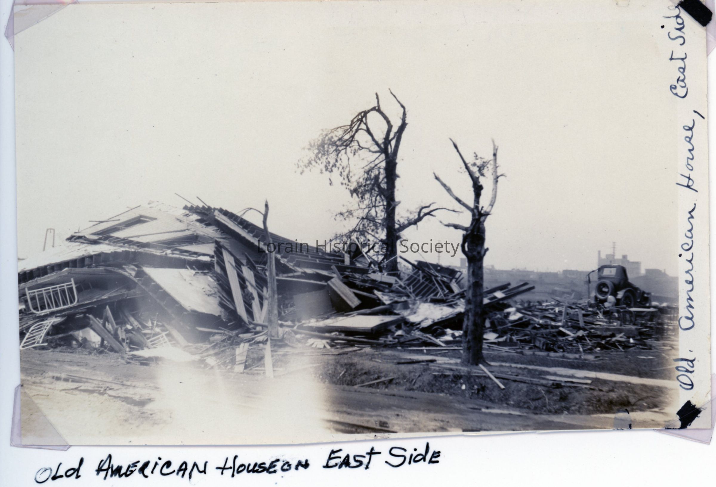 Photograph is view of Old American House on East Side of Lorain showing complete destruction from 1924 Tornado.Collection