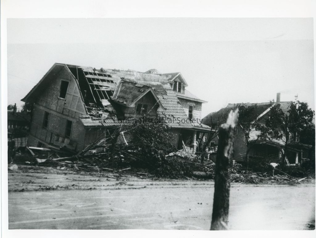 NOTE IN FILE: WURMSER HOUSE LORAIN TORNADO June 28, 1924 Homes twisted by the force of the tornado From views not in computer"Photograph Details