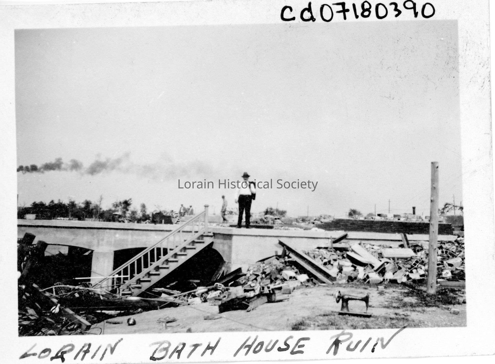 Photograph is black and white view of Lakeview Bath House showing destruction from 1924 Tornado.Acquisition