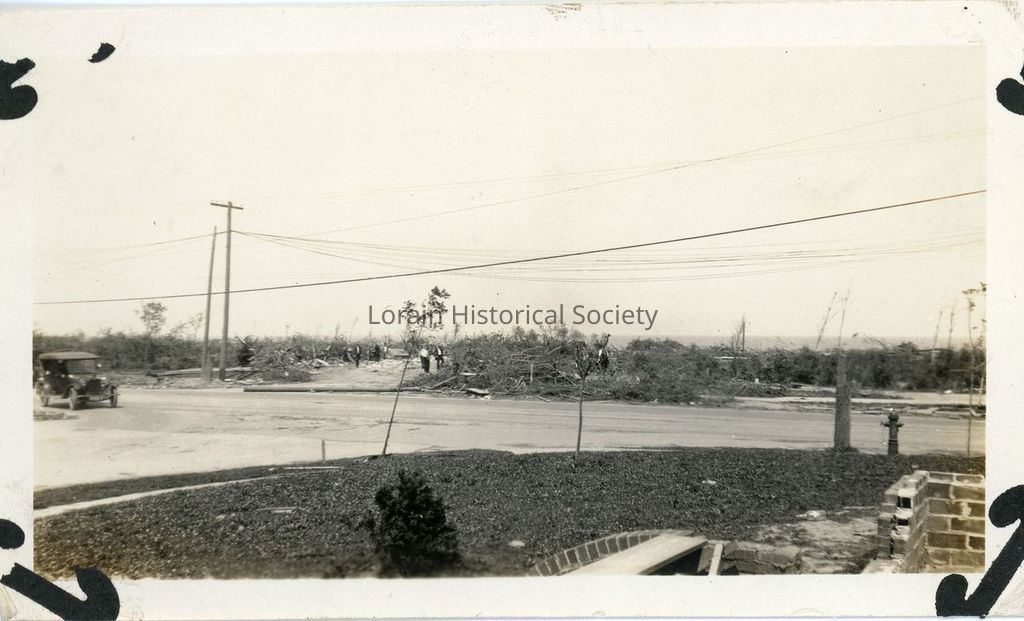 Written on back of photograph: "Pic By Earl Joyce 1924 Lorain, OH Tornado".Photograph Details